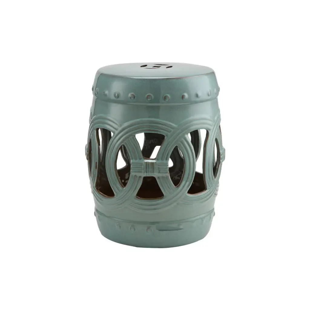 Add a touch of elegance and functionality to your space with this versatile ceramic garden stool. Expertly crafted from high-quality ceramic and fired at temperatures up to 2,192°F, it’s designed to endure year-round use as a durable piece of outdoor furniture. Its timeless knotted ring design blends beautifully with various décor styles, making it a perfect accent for gardens, patios, decks, or indoor spaces. Whether you need an extra seat, a footrest, or a patio end table, this multifunctional piece delivers both style and practicality. The glazed finish not only offers a sleek look but also resists weather and is easy to clean with a damp cloth.Product details: Premium Ceramic material, Impressive 300 lbs. weight capacityweather-resistant glaze, suitable for indoor and outdoor use.