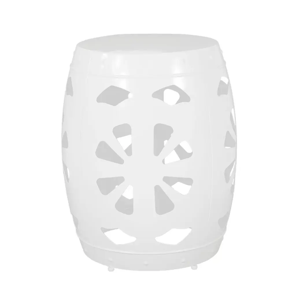 Cavinas Hollow Barrel Ceramic Tile Outdoor Patio End Table With Flower Cut Design,small Side Table For Patio,garden,balcony,white