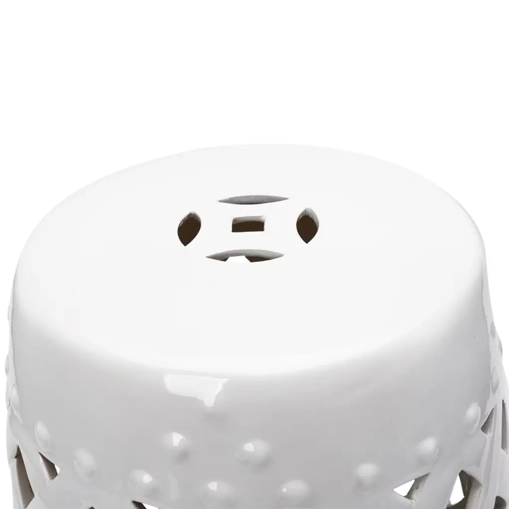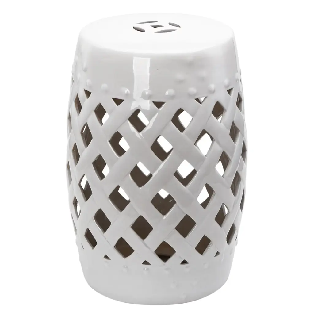 Elevate your outdoor space with this 13-inchx18-inch ceramic garden stool featuring an elegant woven lattice design. This versatile outdoor side table doubles as decorative patio end table or extra seating, crafted from high-fired ceramic for year-round durability. The weather-resistant glazed finish and 300lb weight capacity make it perfect for gardens, patios or poolside areas.