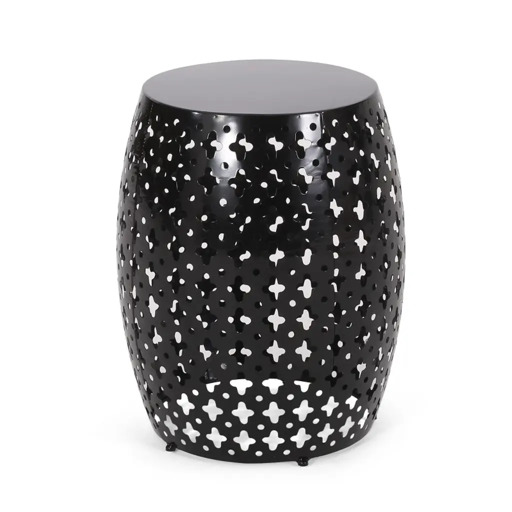 Cavinas Modern Fusiform Iron Cut Outdoor Patio End Table,waterproof Weather Resistant Side Table For Patio,garden,balcony,black