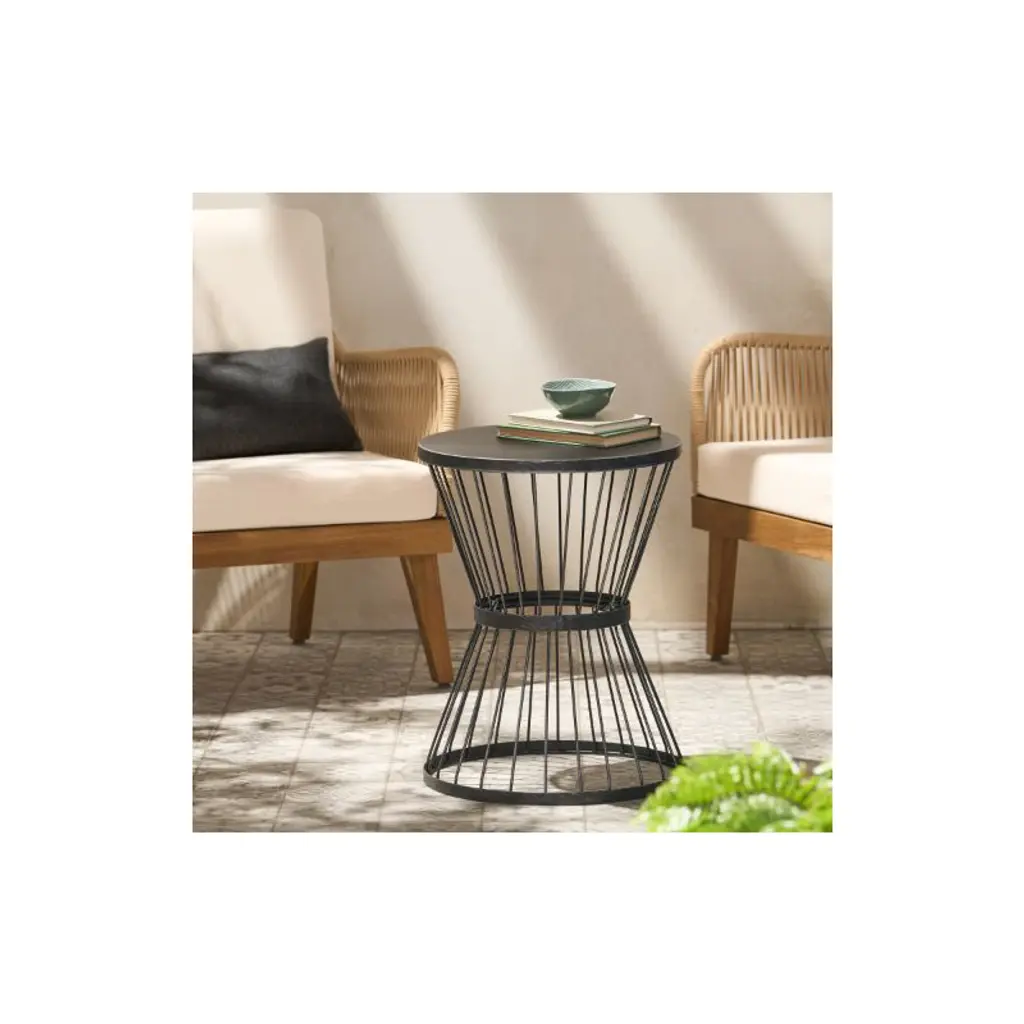 Elevate your outdoor oasis with this modern hourglass side table, blending sleek lines and an open cage design for a sophisticated patio accent. The powder-coated iron frame ensures durability against the elements, while the 16.25"W x 21"H size offers the perfect surface for chilled cocktails, snack trays, or decorative accents. Ideal as a patio end table or outdoor side table, its minimalist hourglass structure adds artistic flair to decks, patios, or poolside spaces—ready to hold your summer essentials with modern charm.