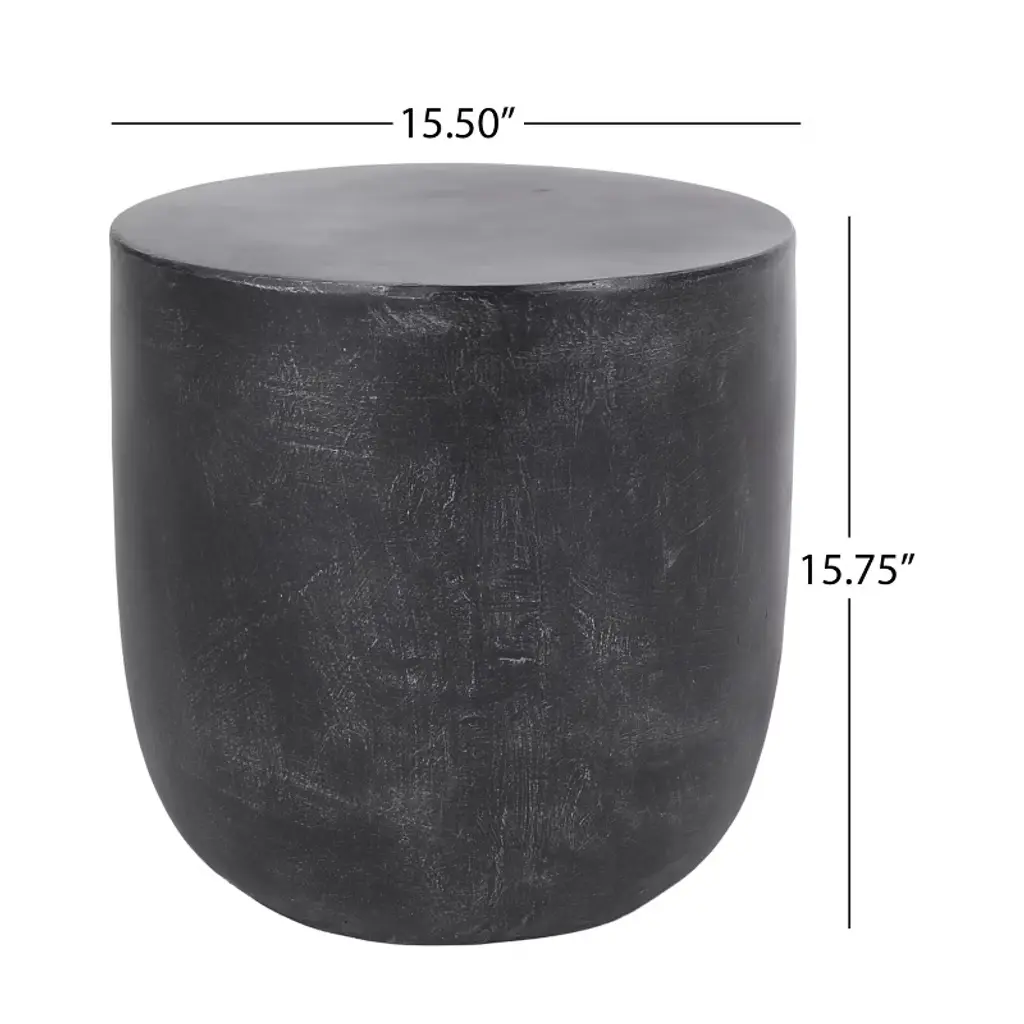 Cavinas Modern Lightweight Concrete Patio Table,15.5" Outdoor Side Table With Barrel Design,end Table For Poolside,garden,patio,matte Black