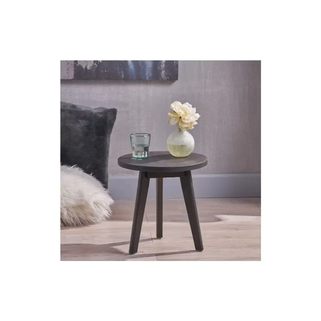 Cavinas Modern Patio Side Table With Round Tabletop And Three Angled Legs, Handcrafted Acacia Wood Outdoor Table, Dark Gray Outdoor End Table