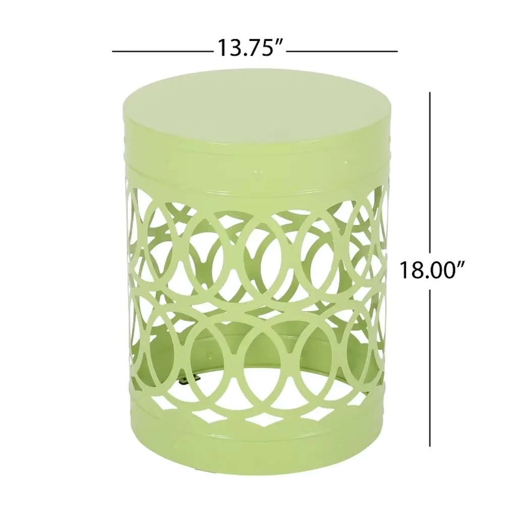 Cavinas Outdoor Side Table With Iron Cut Design And Powder-coated Iron Frame,patio End Table For Courtyard,garden,balcony,green