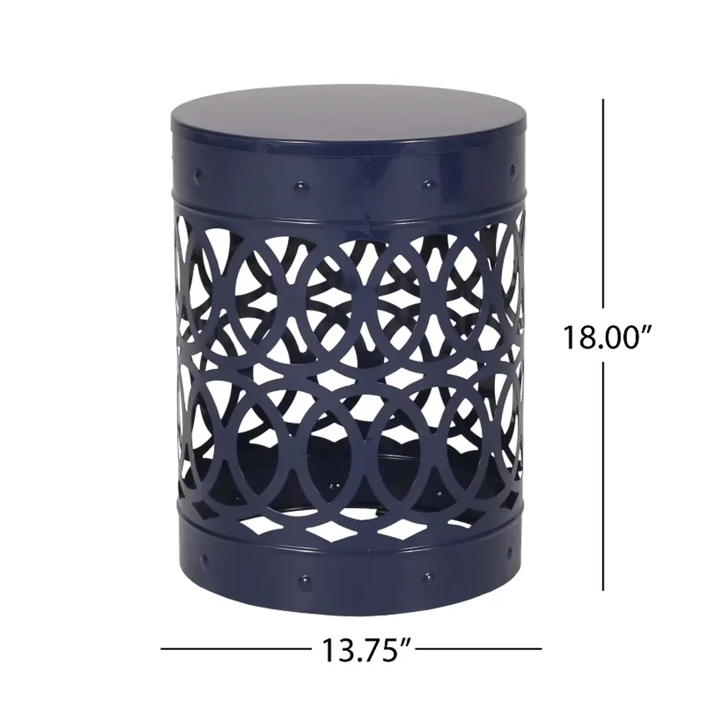 Cavinas Outdoor Side Table With Iron Cut Design And Powder-coated Iron Frame,patio End Table For Courtyard,garden,balcony,navy Blue