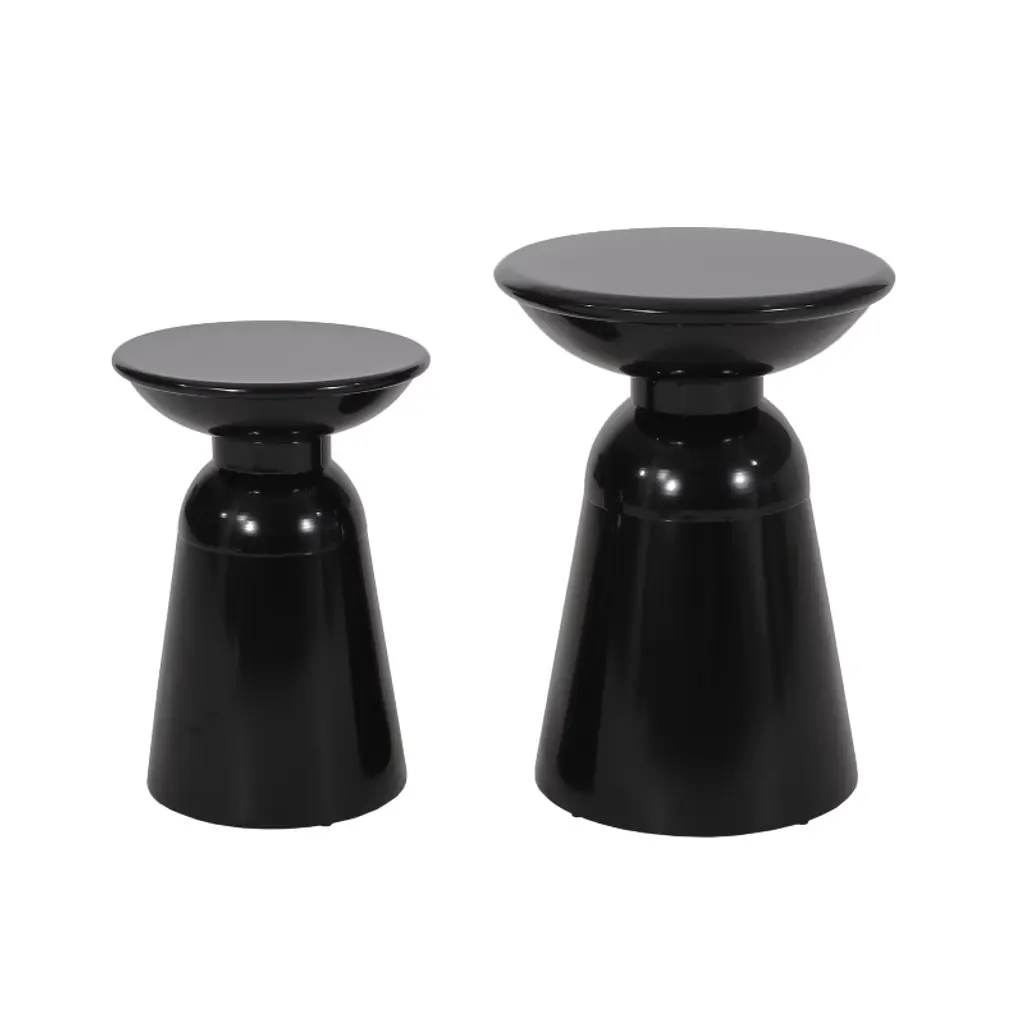 Elevate your outdoor space with this stylish set of 2 patio tables, featuring a contemporary flared design in durable powder-coated iron. These outdoor side tables include one large (15-inchW x 15-inchD x 20.75-inchH) and one small (12-inchW x 12-inchD x 17.25-inchH) table, perfect for drinks, snacks or decor. The modern pedestal base and flared silhouette add sophisticated flair to any outdoor end tables for patio arrangement.