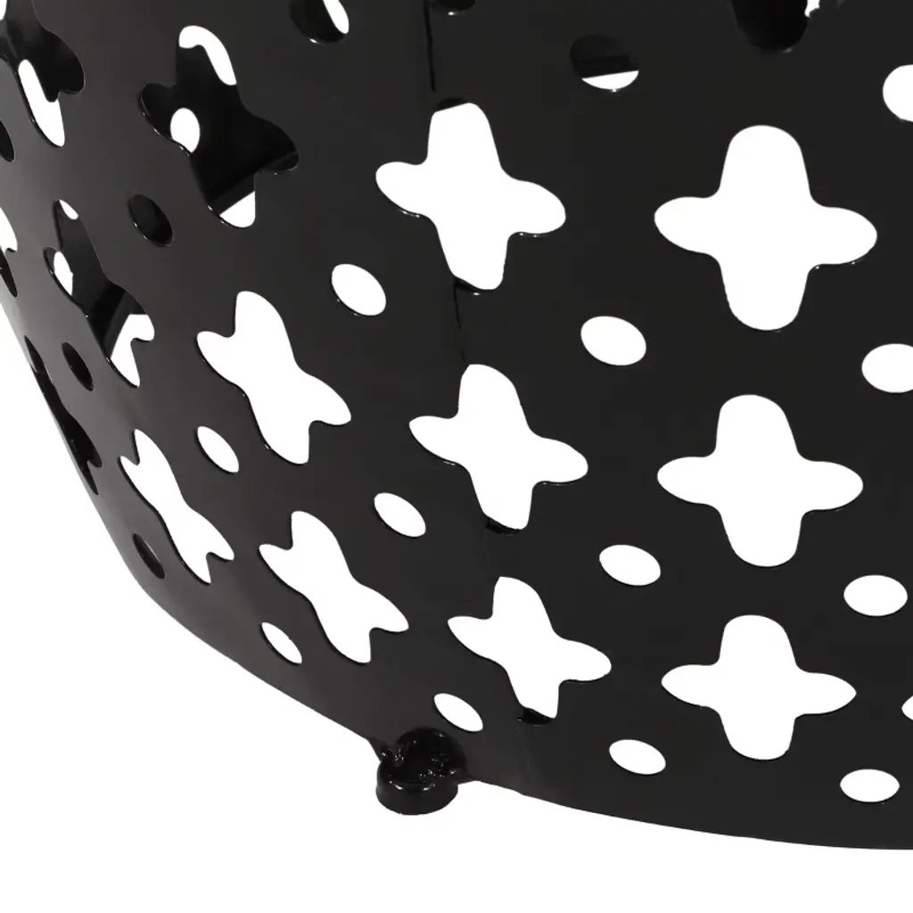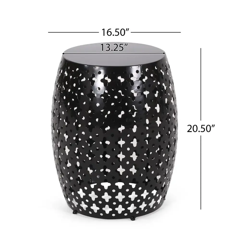 Cavinas Steel Patio End Round Table With Hollow Drum Design, Accent Table For Outdoor And Indoor Use, Black