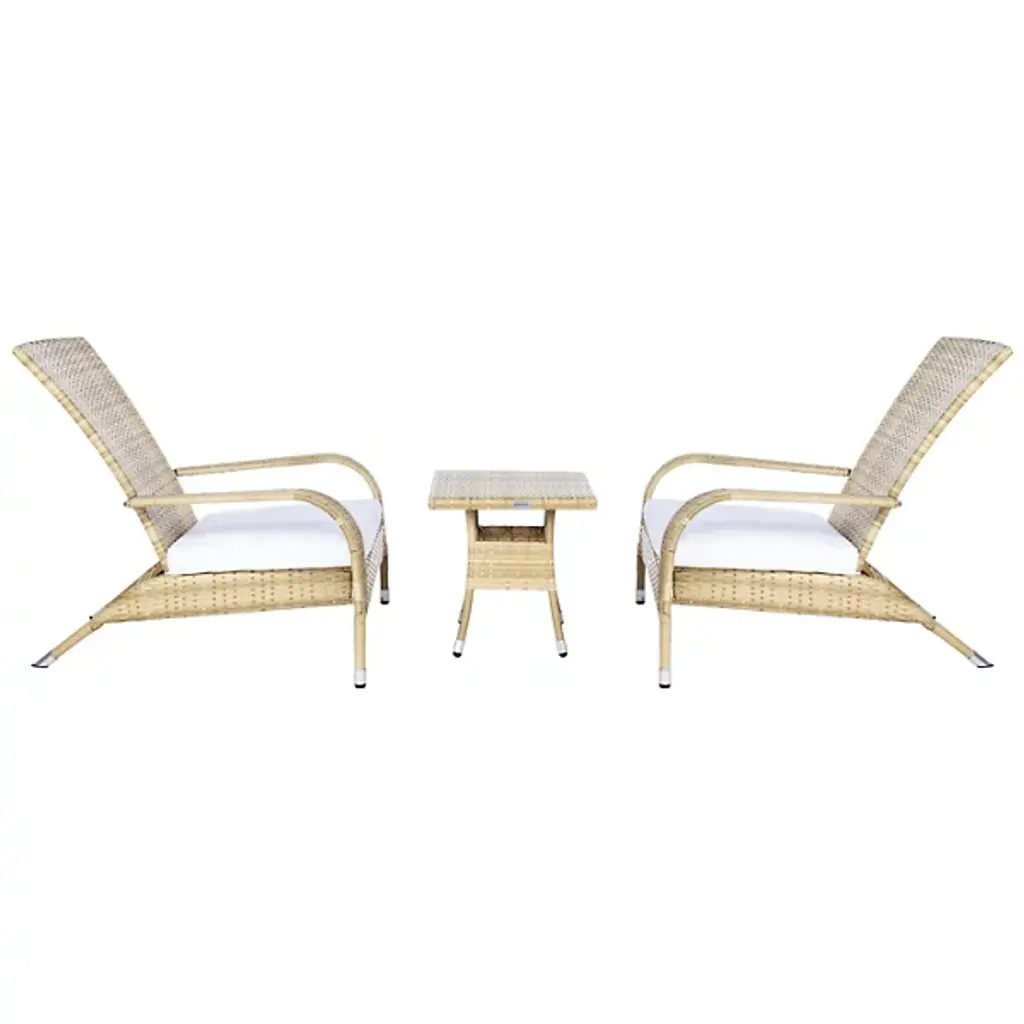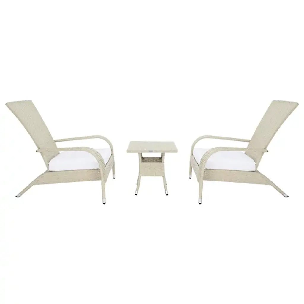 Elevate your outdoor living space with the Cayuga 3 PC Outdoor Lounge Set from Alder & Ore, blending tropical charm with a modern French-inspired design. Featuring a subtly reclined, wingback-style silhouette crafted from durable PE rattan, Edna brings a touch of visual intrigue to any patio or garden. Plush white cushions provide exceptional comfort, making it perfect for relaxing in style. Complete with a versatile side table, this set is functional and stylish, ideal for enhancing your outdoor retreat.