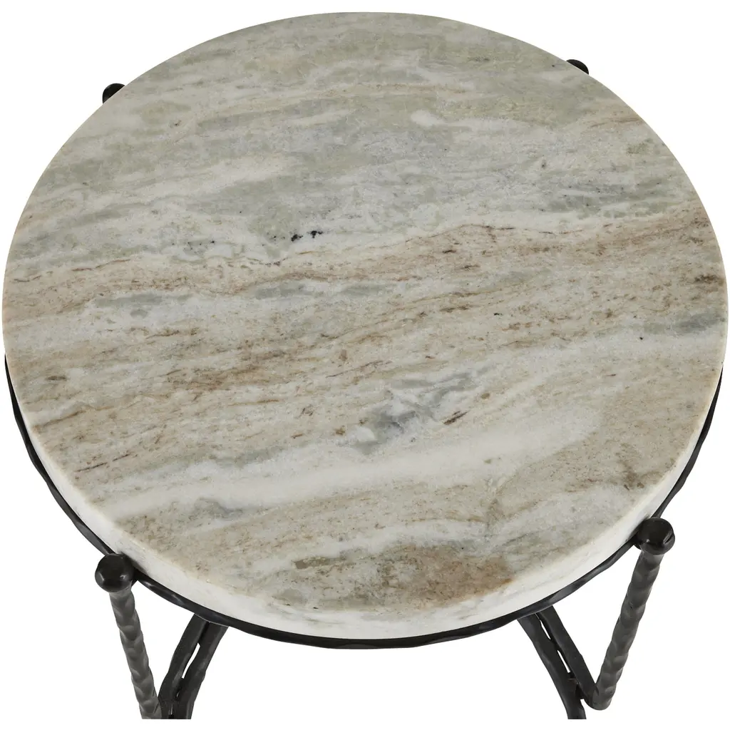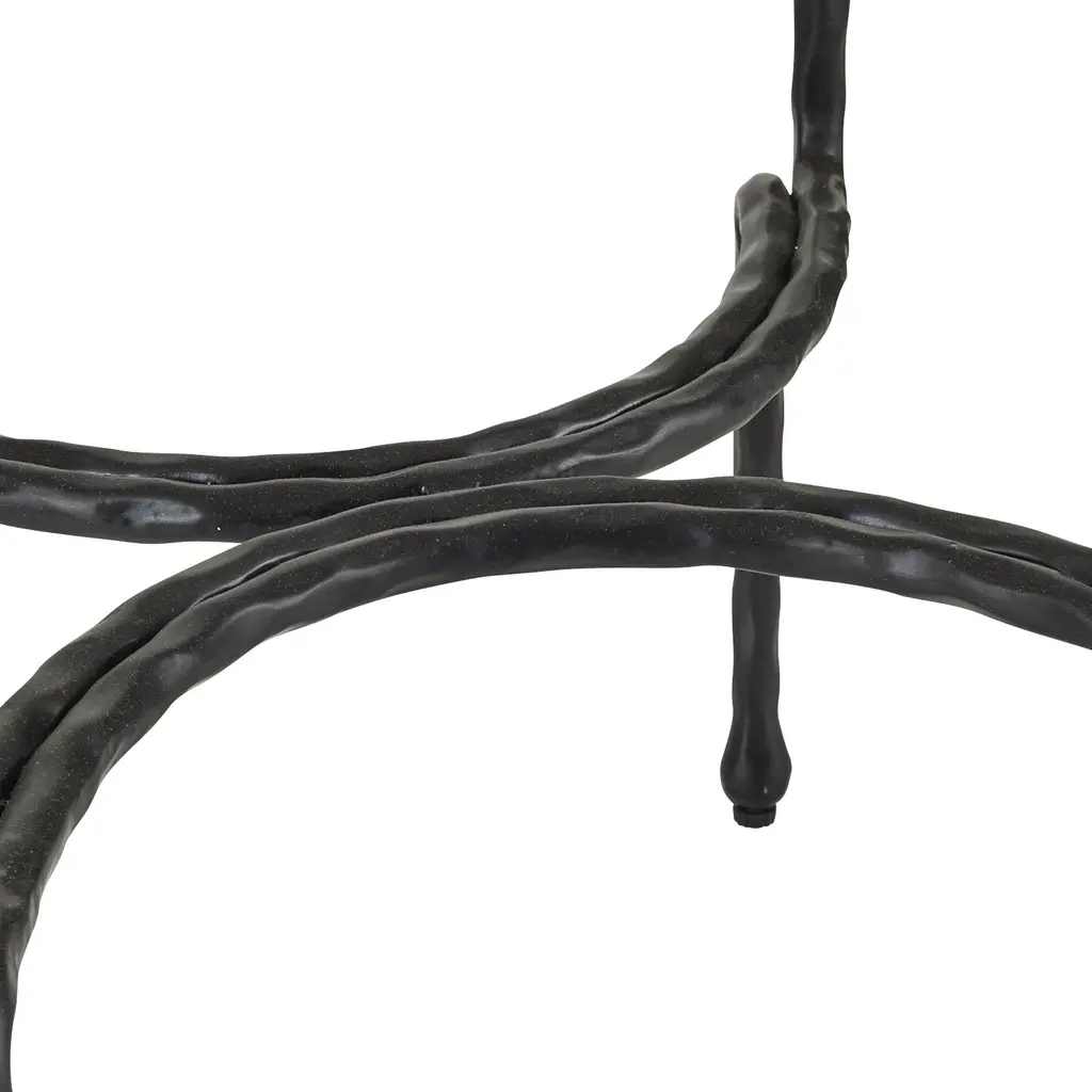 All intersecting lines and flowing forms, the Cedric is a nod to a traditional silhouette updated in fresh materials. A hammered u-shaped base of blackened iron juxtaposes an over-scaled toronto leathered marble top. Finish will vary.