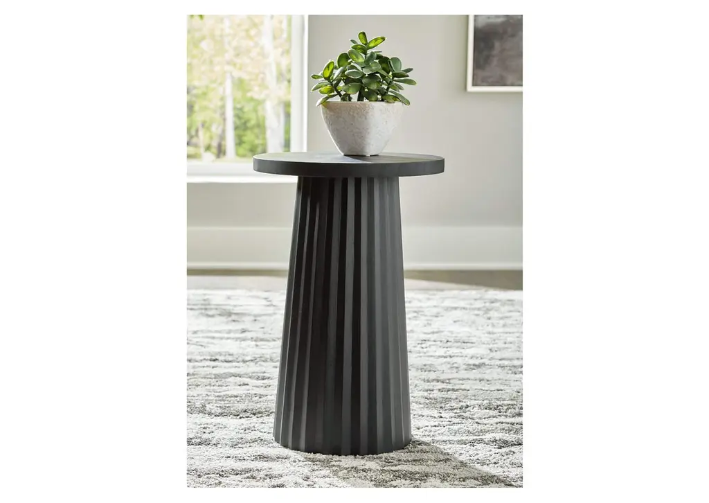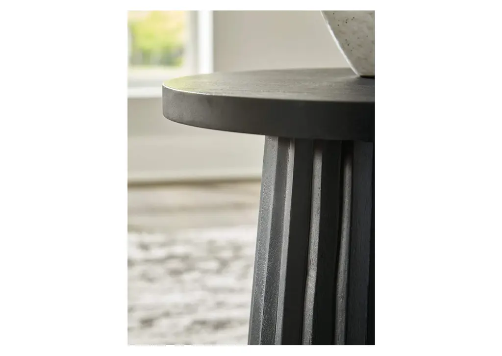 Show off your trend-right sensibilities with the contemporary Ceilby accent table. Designed for the modern tastemaker, the solid wood piece wows with a fluted base. This organic beauty can be used on its own or grouped with other pieces in the collection. How’s that for form and function? Weight 17.000 lbs. (7.65kgs.)