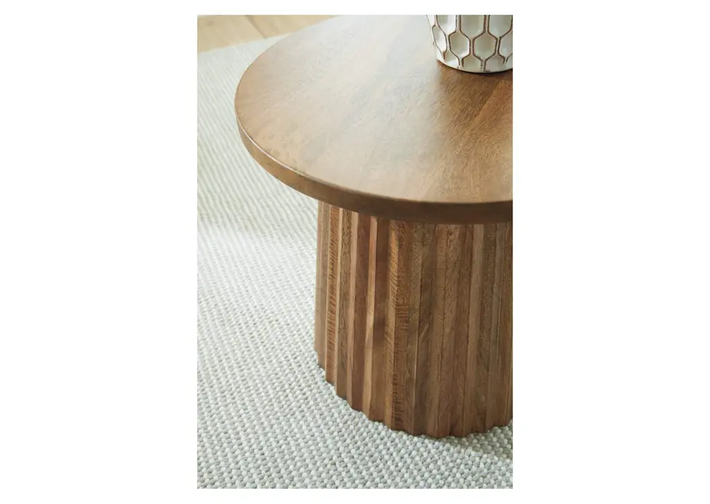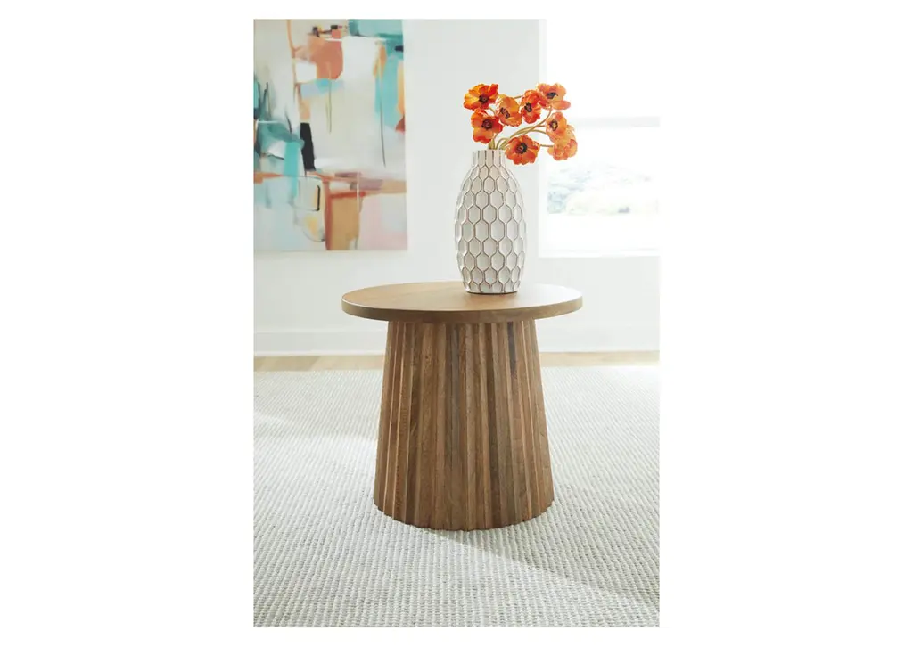 Show off your trend-right sensibilities with the contemporary Ceilby accent table. Designed for the modern tastemaker, the solid wood piece wows with a fluted base. This organic beauty can be used on its own or grouped with other pieces in the collection. How’s that for form and function? Weight 27.000 lbs. (12.15kgs.)
