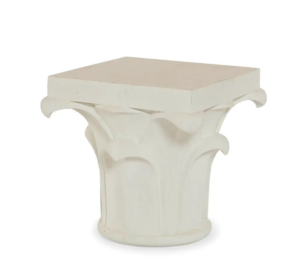 Designed to mimic the classic Corinthian columns, this small side table has the decorative, bell-shaped capital with volutes, two rows of acanthus leaves and an elaborate cornice. At just 19" high and 20" around, it is the perfect size for an outdoor patio or porch. With proper care and maintenance, Century Outdoor furniture can be enjoyed for many years. For best protection, perform routine maintenance, as recommended, in low pollution areas and more frequently in high pollution areas.