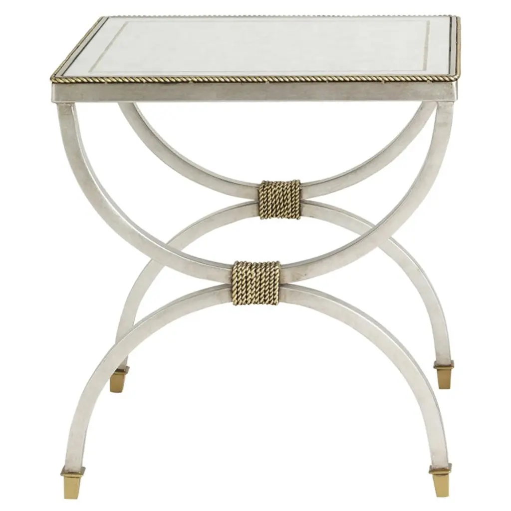 Century Jacqueline Silver Metal Frame Eglomise Top Square Side End Table