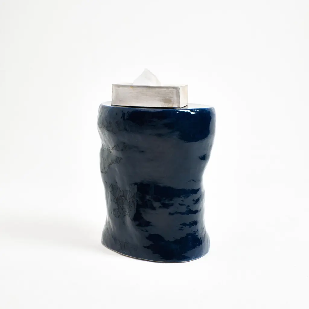 Large Ceramic Side Table in navy.Designed by Project 213A in 2023This hand-build ceramic side tables has an organic structure allowing each side to have a versatile appearance.Crafted in Project 213A's in-house ceramic workshop it is made from locally sourced clay and finished with a shiny navy glaze.Different colour and shapes available upon request. Made to Order. Lead time 15-16 weeks