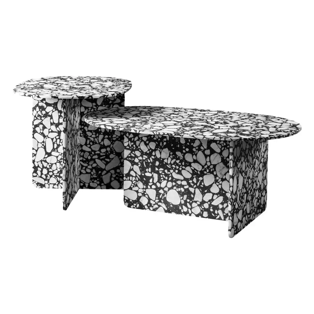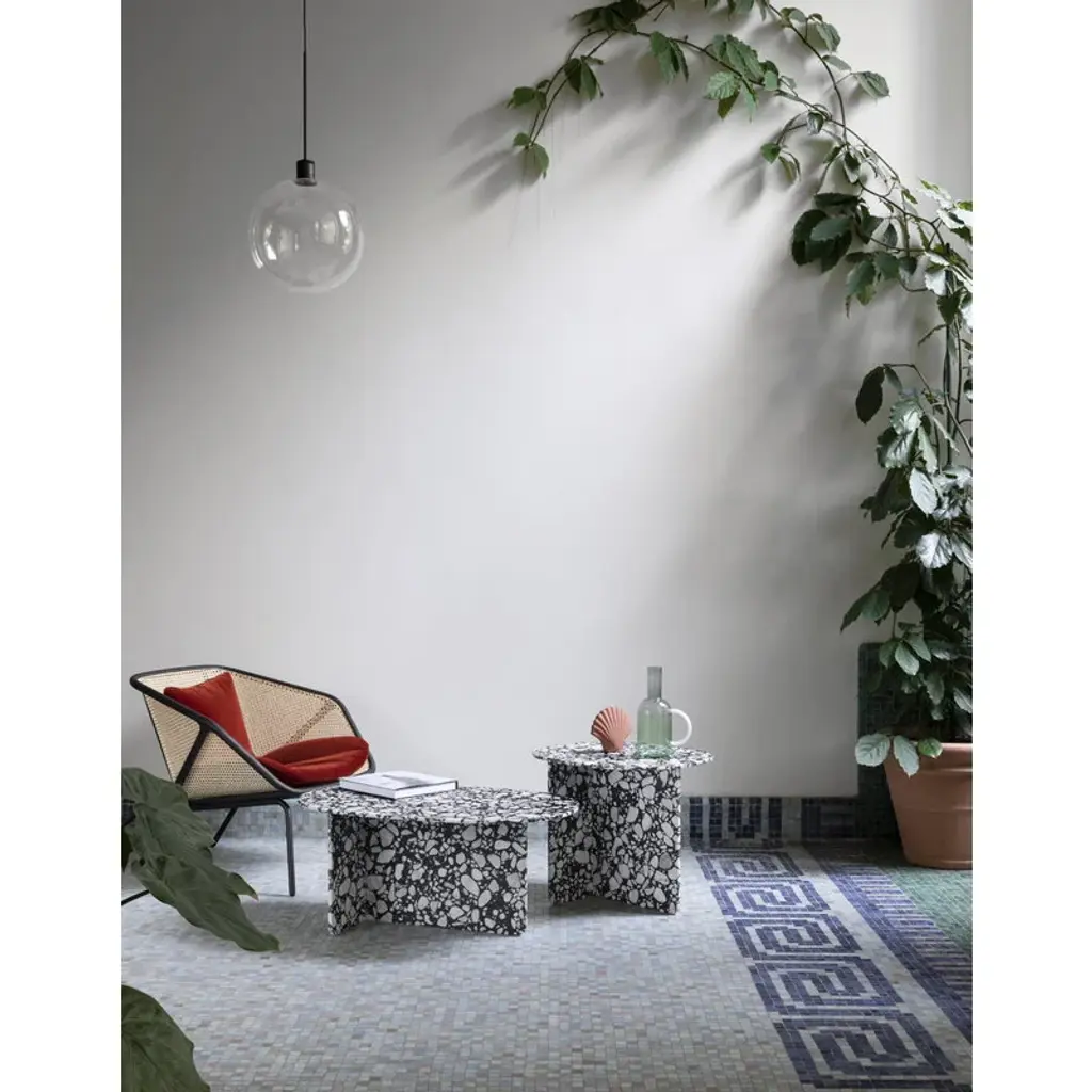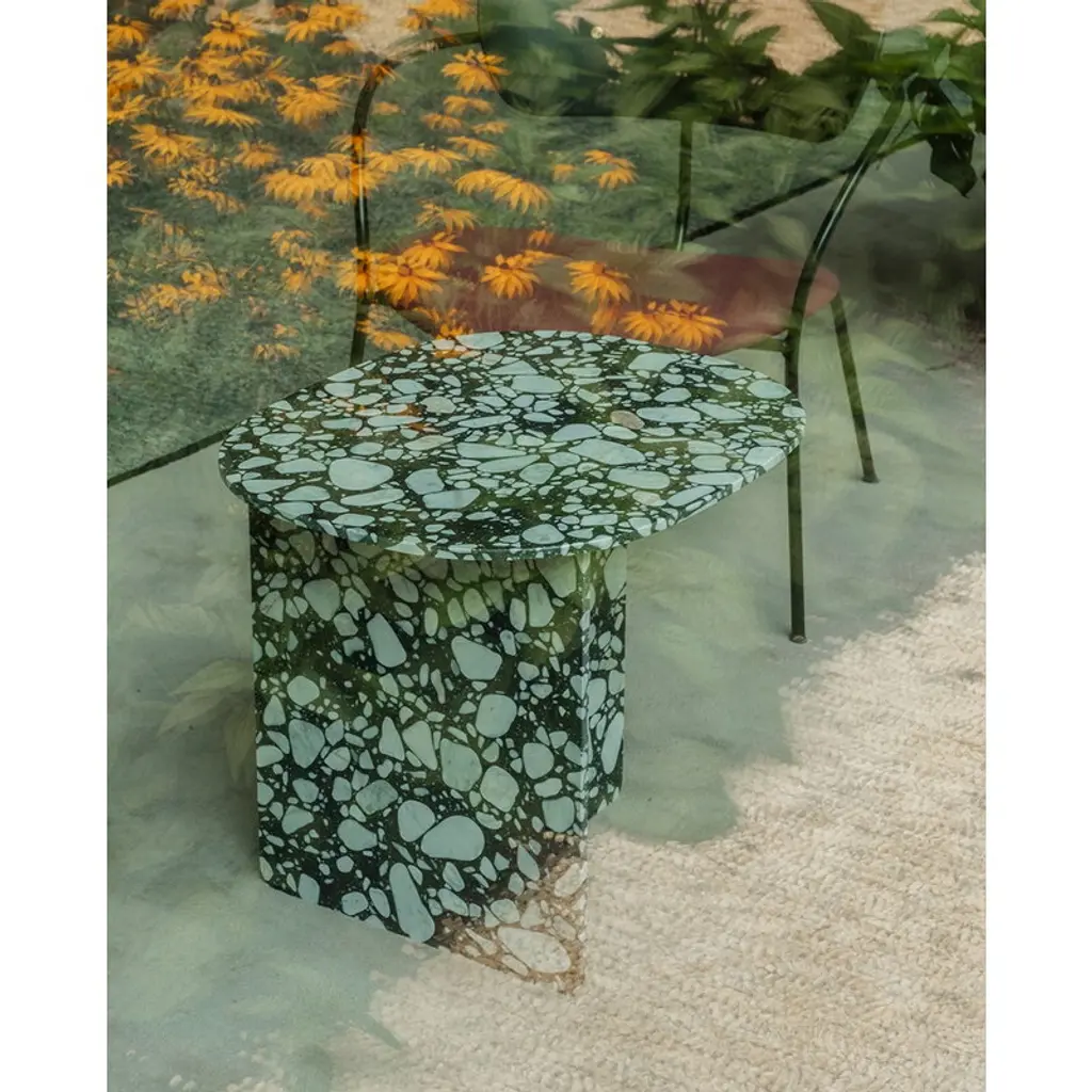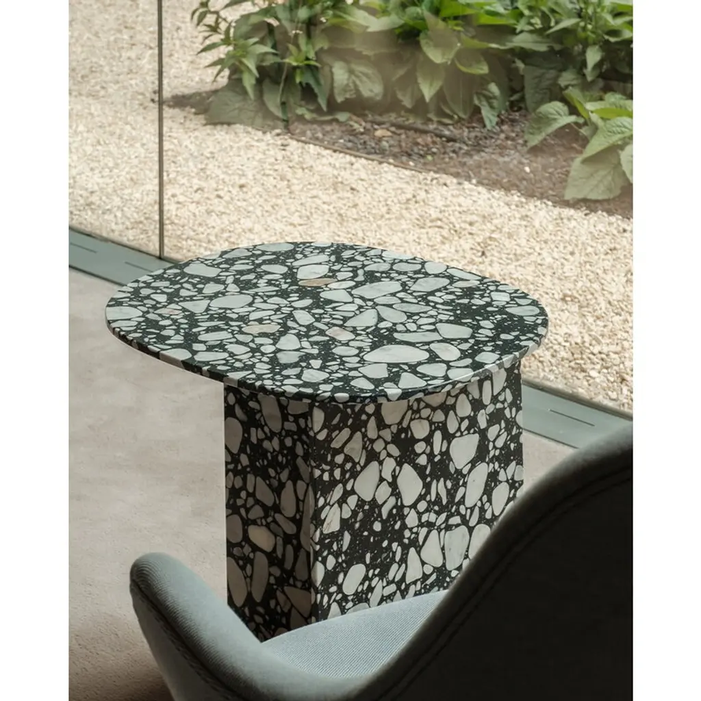 Chap side table by Miniforms delights with its sculptural appearance, where different geometric shapes meet each other. Designed by Matteo Zorzen, the table consists of an oval tabletop that creates an interesting contrast with the straight lines of the legs. The multifunctional table invites you to place flowers on a vase, a pile of beautiful books or ornamental objects on top of it – or leave the table completely empty, as it also acts as an elegant eye-catcher on its own rights. The Chap side table is made of sophisticated marble that has unique colors and textures, changing from table to table.