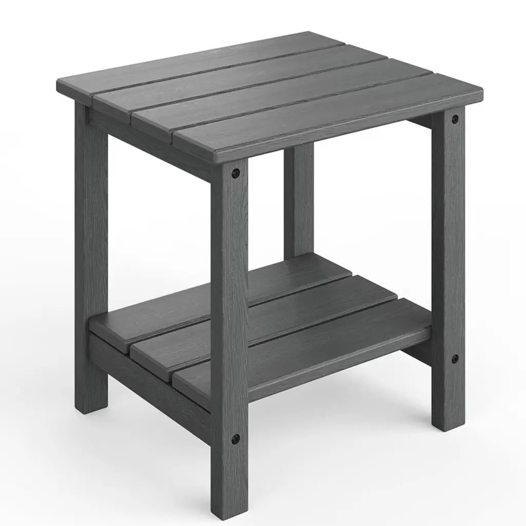 Tie all aspects of your outdoor décor together with the unsung hero of design, the side accent table. The classic look of this commercial grade poly resin side table mimics the lattice design of Adirondack chairs but will also blend seamlessly with other patio furniture. Designed for indoor or outdoor use, place this slatted side table in the sunroom or on the front porch for a cohesive look. Longevity and durability are important hallmarks for quality furniture and this patio side table is up to the task. Constructed from polystyrene, this accent patio table is more durable than plastic and won't chip, splinter or peel but is lightweight and easily portable making it perfect for the hospitality industry. Metal screws securely join all pieces of this poly resin table allowing it to hold up to 200 lbs. static weight capacity. Exemplary UV, weather and stain resistance makes this patio furniture table an ideal piece for decks, patios, or poolside or to hold drinks and snacks while camping or tailgating. Assembly takes less than 30 minutes for your convenience. Pair this poly resin patio table with our set of 2 or 4 all-weather poly resin wood Adirondack chairs for the complete set up.
