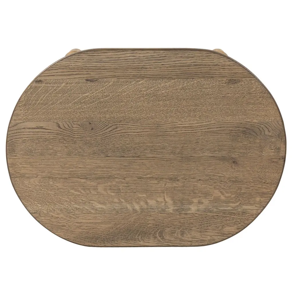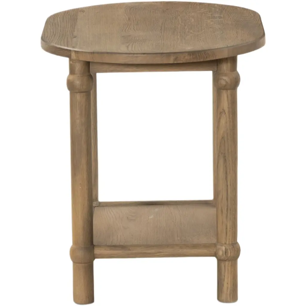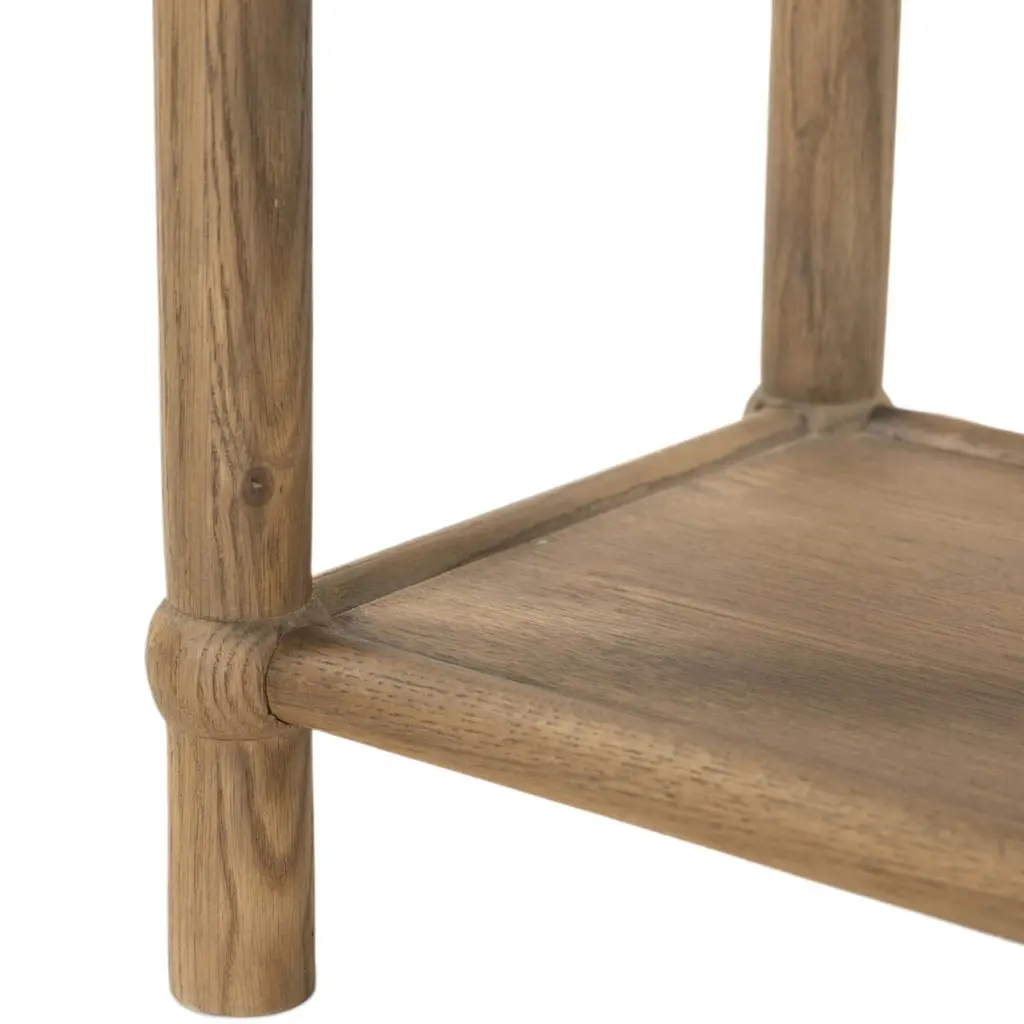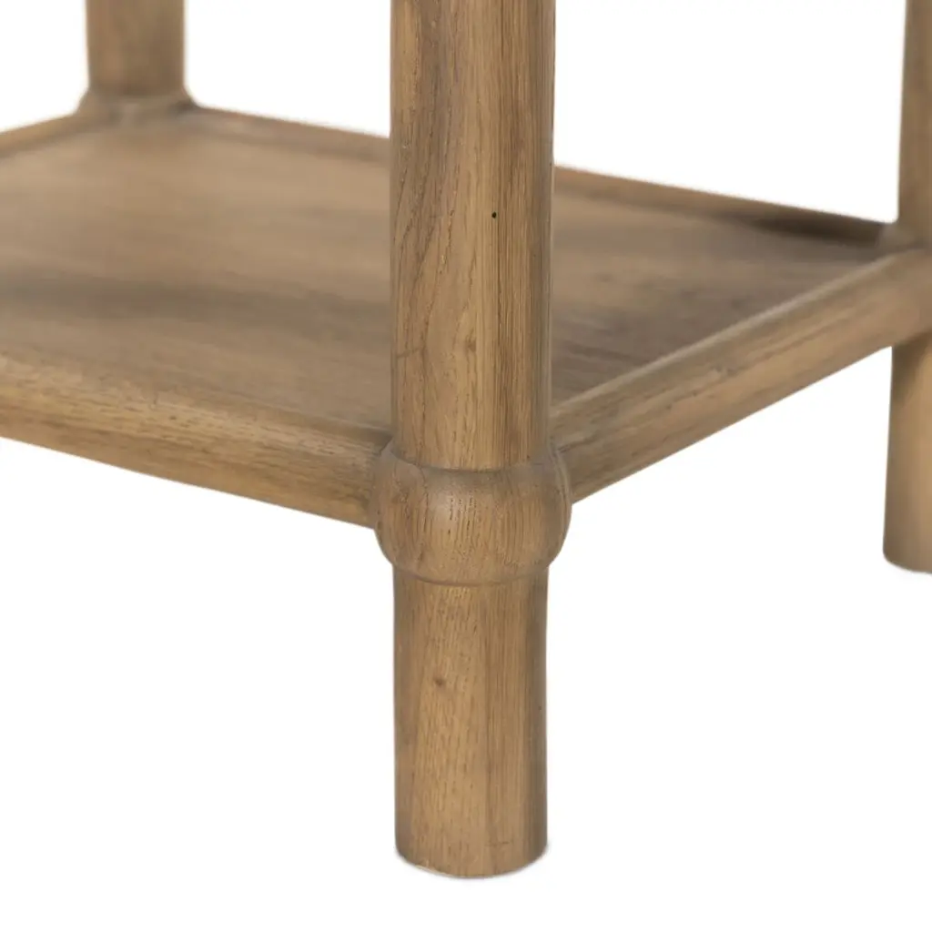 Crafted from warm, natural oak with natural antiquing. A rounded bullnose edge and lower shelf add functionality, while round ball details provide a crafted finish. A design collaboration by Amber Lewis and Four Hands.