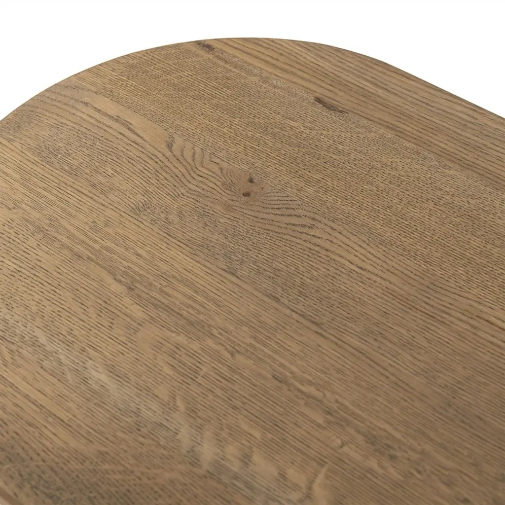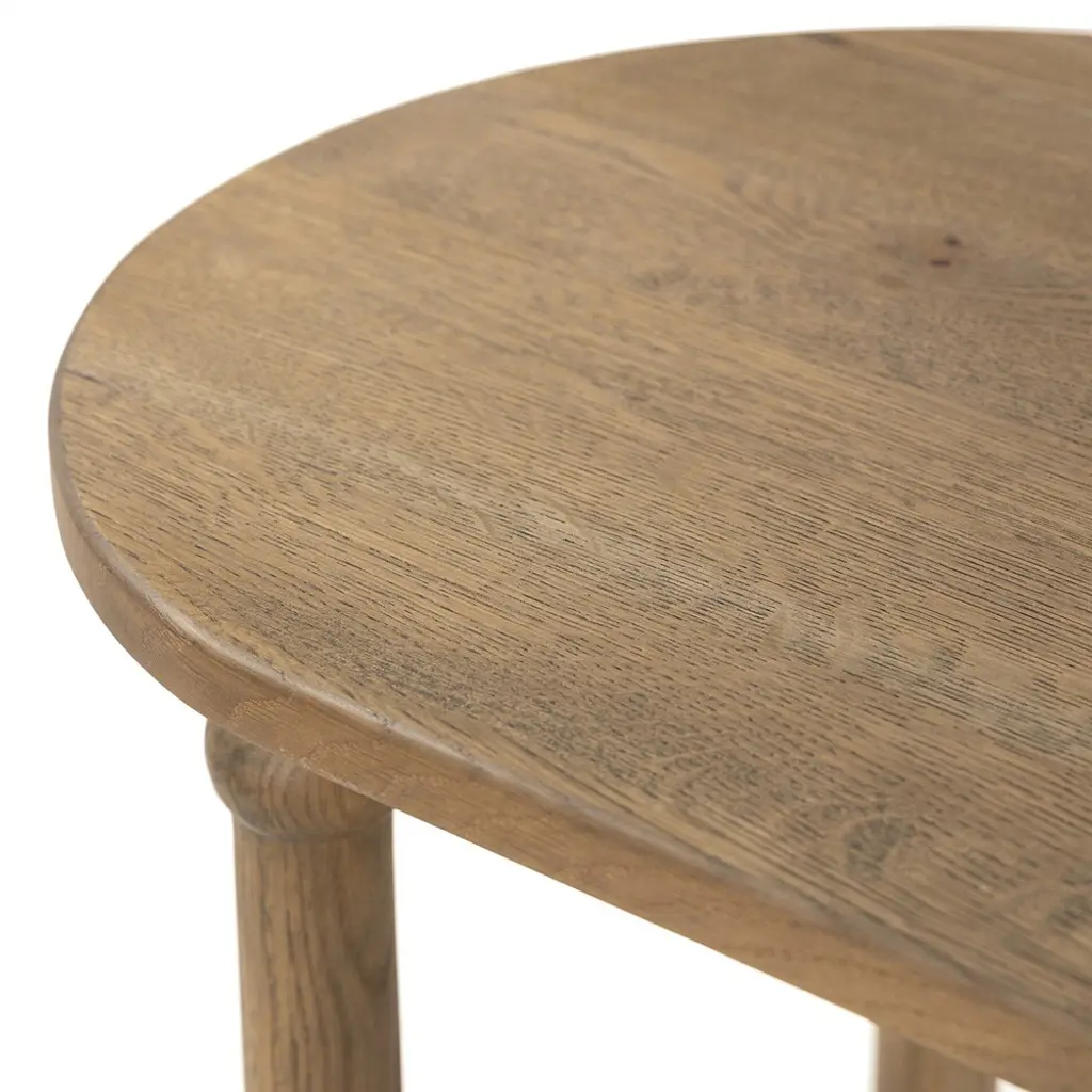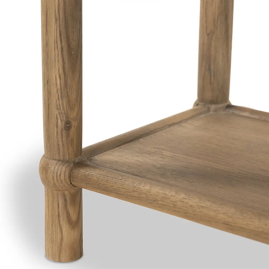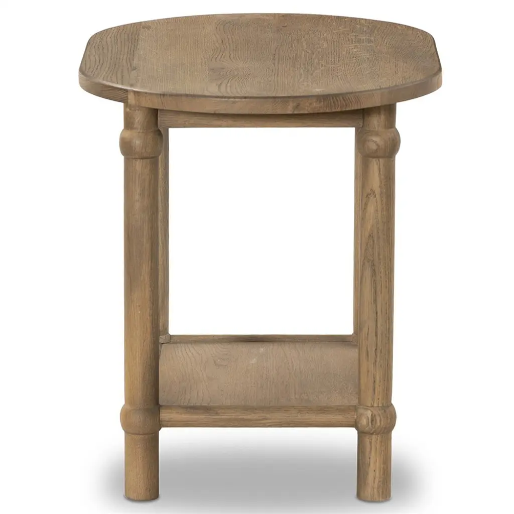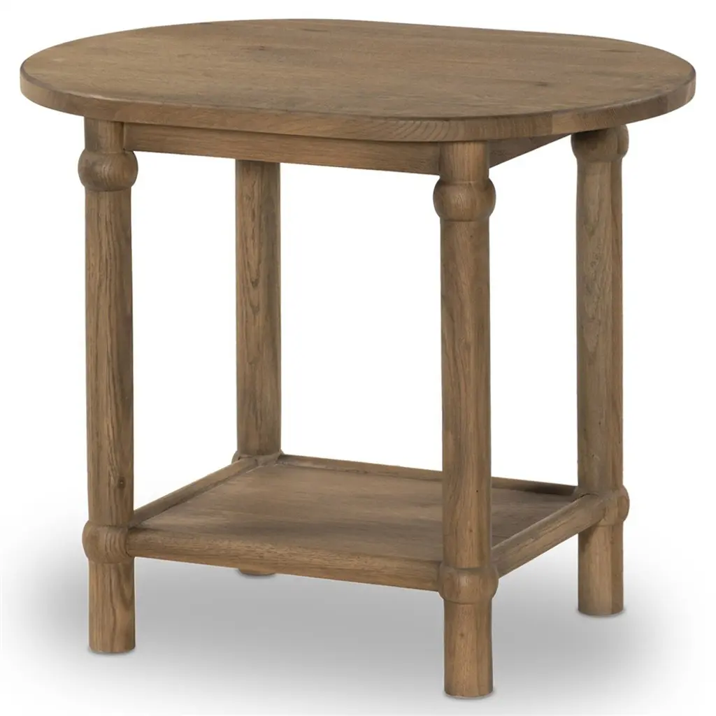 A design collaboration by Amber Lewis and Four Hands. Crafted from warm, natural oak with natural antiquing. A rounded bullnose edge and lower shelf add functionality, while round ball details provide a crafted finish.