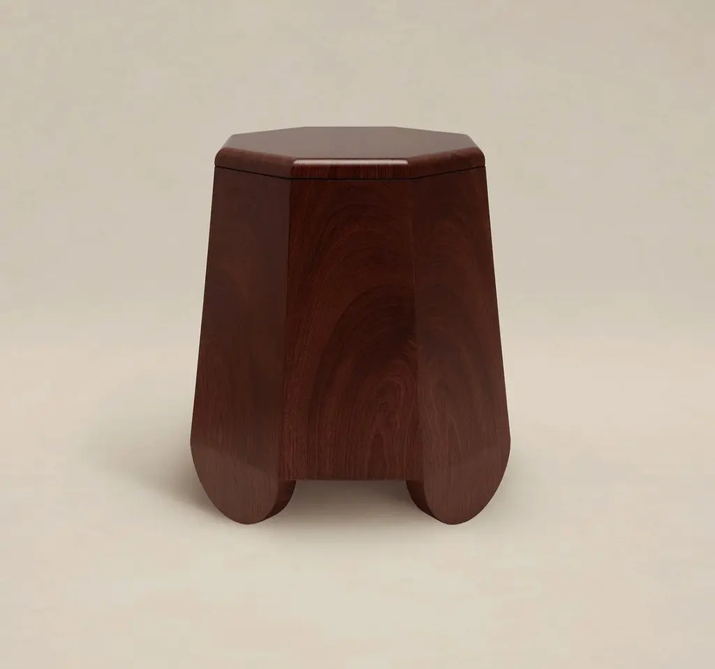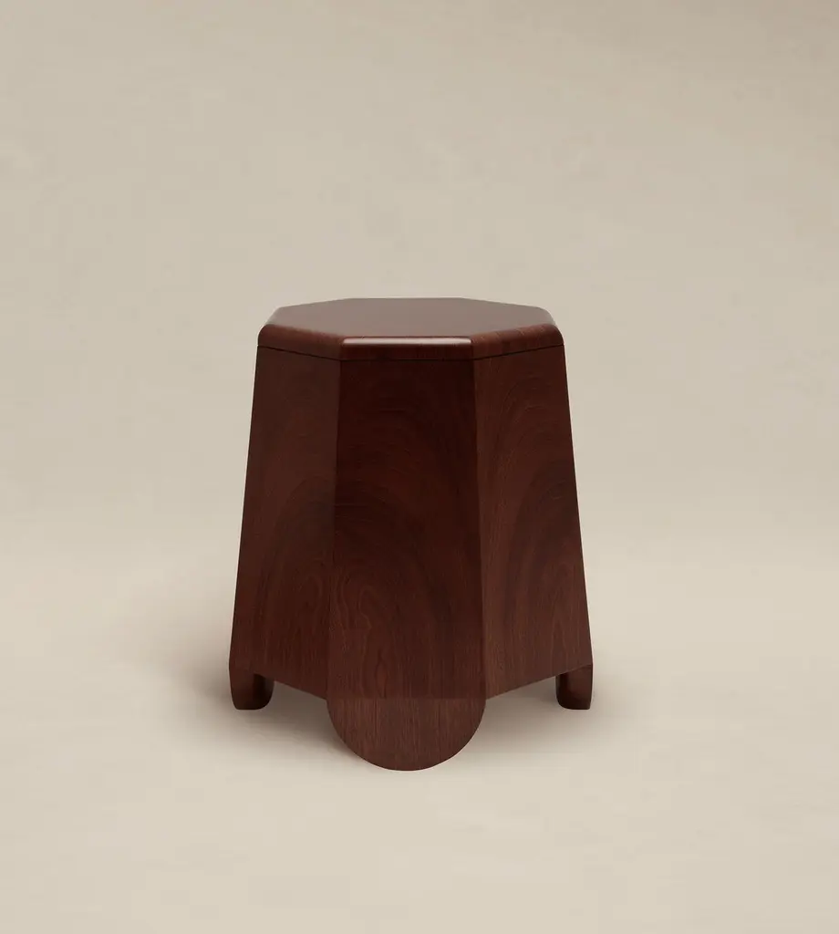 Chatior Side Table by Aède StudiosDimensions: D 44 x W 44 x H 50 cm. Materials: Figured mahogany. Available in figured mahogany or oak. Custom materials are available on demand. Please contact us. Aède is an interdisciplinary design studio based in Paris. Our creations focus on lighting, furniture, and objects, exploring a blend of historical influence, a fascination with narratives, and a commitment to craftsmanship. Inspired by the dynamic synergy of these elements, each of our creations reflects a harmonious fusion that embodies the essence of our passion and dedication.The name "Aède" pays homage to classical Greek singers and epic poets, reflecting the tradition of storytelling and transmitting cultural and historical narratives through the captivating medium of design.At Aède, we embrace a departure from prevalent mass production in favor of design imbued with personal value and narrative depth. Believing functionality alone is insufficient, each collection we craft is inspired by a specific era or culture, ensuring that every object carries a unique story, adding meaning to our craftsmanship.