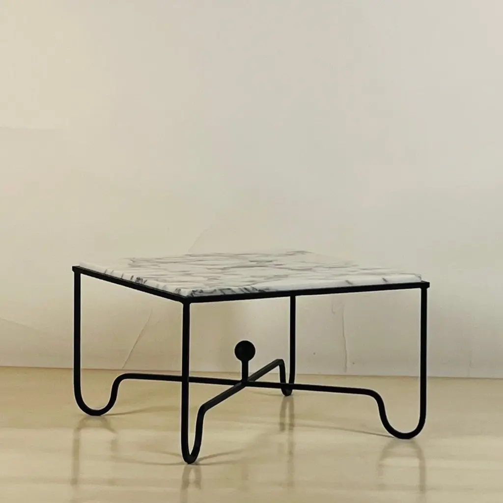 Arabescato marble 'Entretoise' side table by Design Frères. Chic and understated.