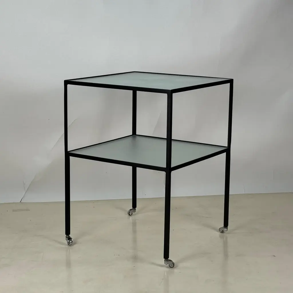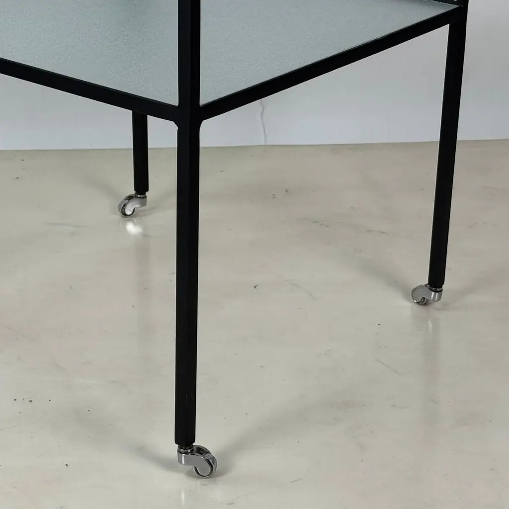 Chic 'Équilibre' Blackened Steel & Glass Side Table On Casters By Design Frères