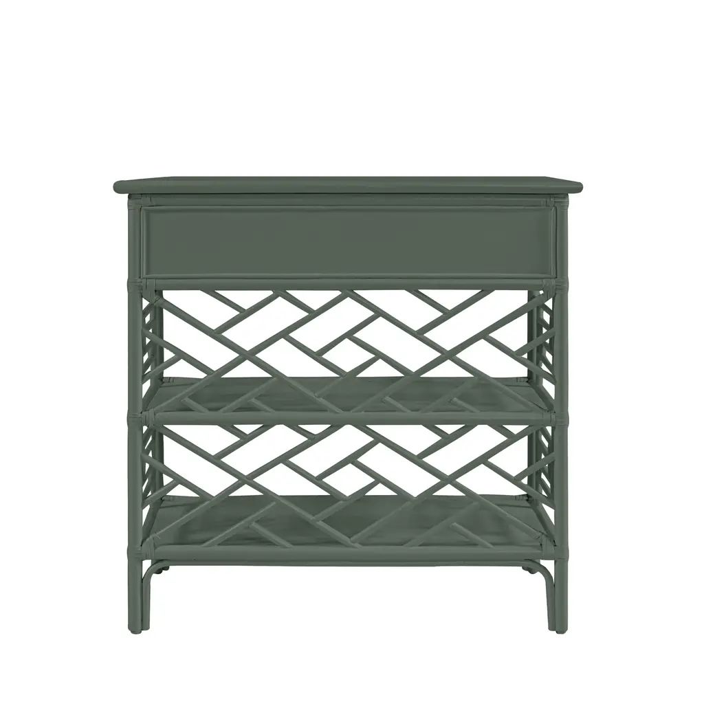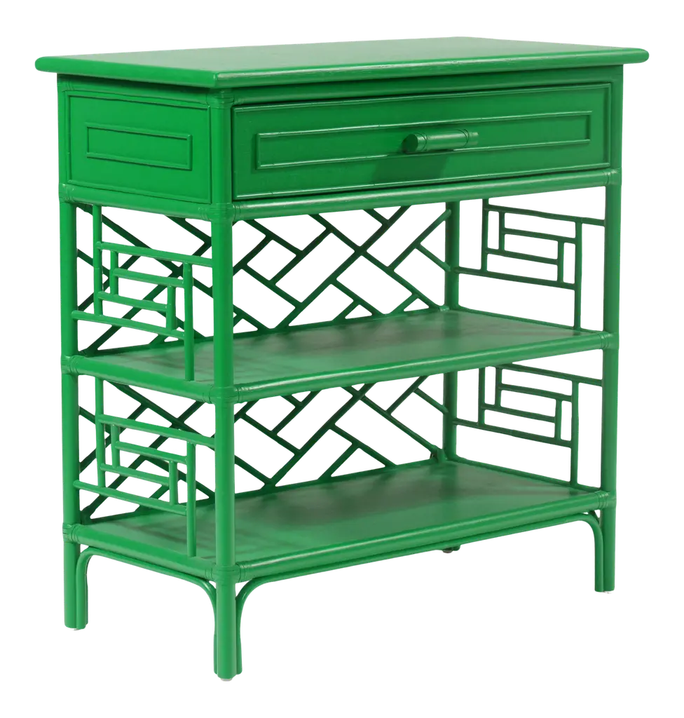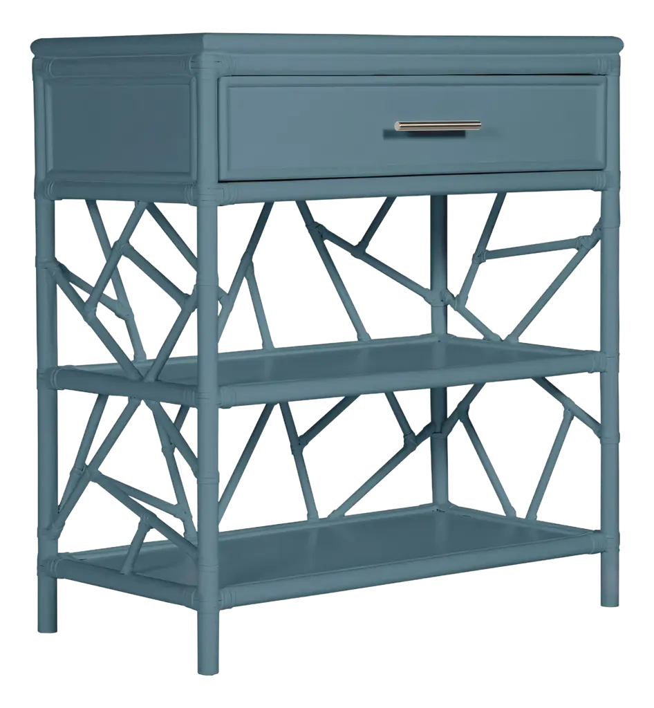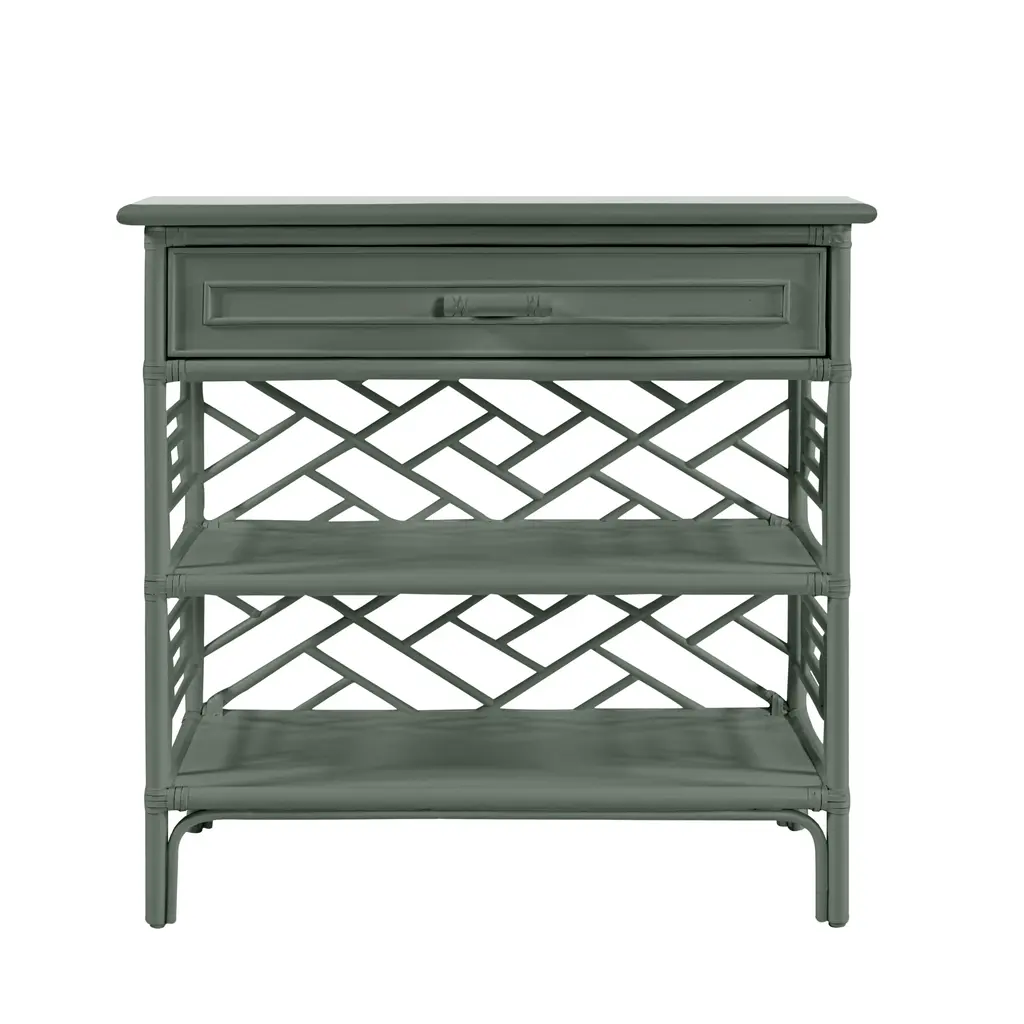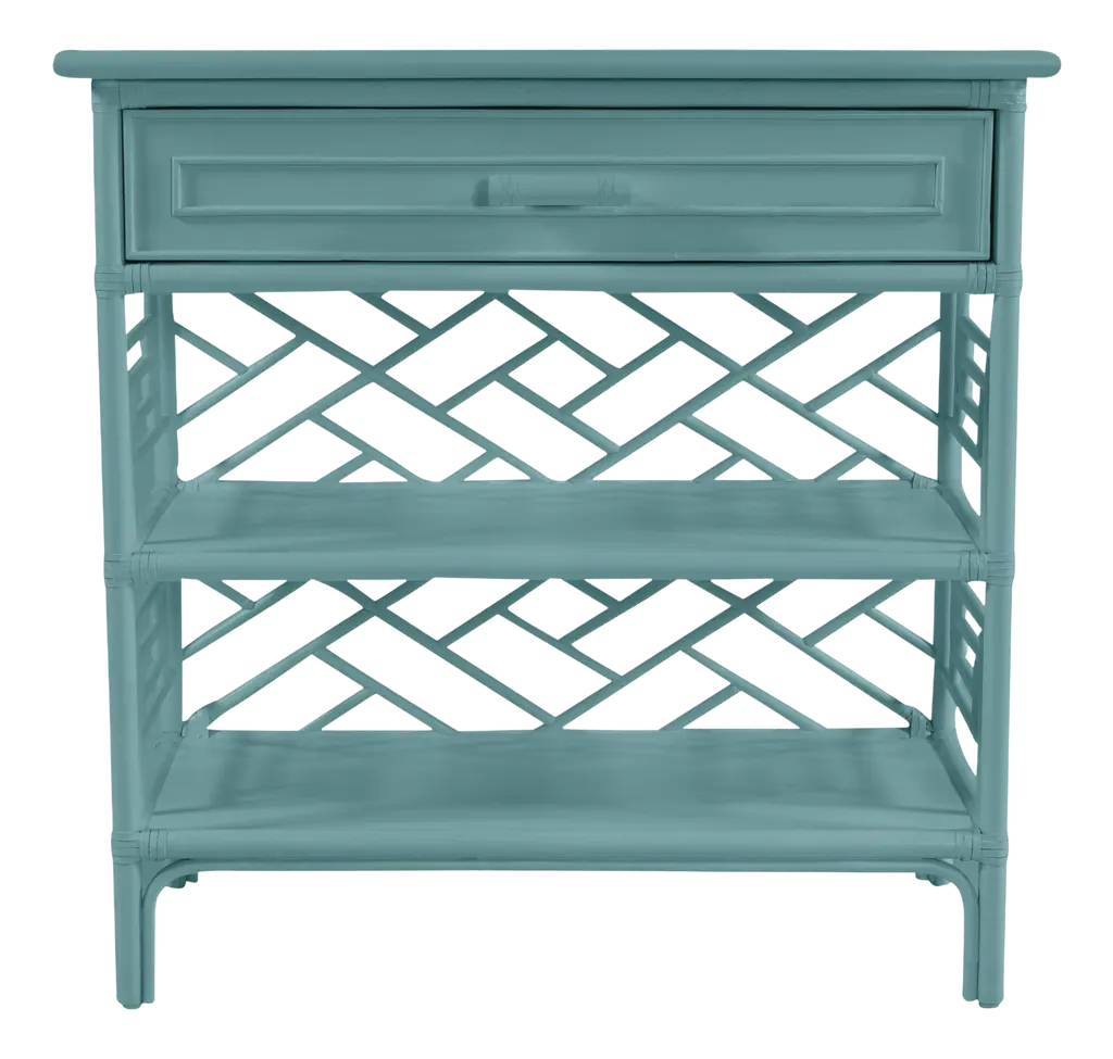 Elevate your living space with the timeless charm of the Chippendale End Table. The frame, crafted from rattan and leather bindings, brings a hint of natural beauty and artisanal charm to your living space while Its classic design brings an air of elegance. Featuring a spacious drawer and two open shelves, this piece not only enhances your décor but also offers practical storage for your essentials. The Chippendale End Table is the perfect blend of style, functionality, and eco-friendly design, making it a must-have addition to your home.