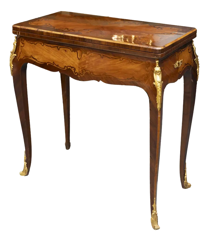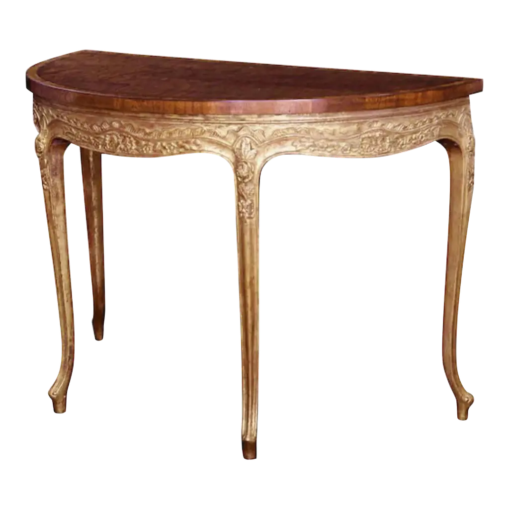 Graceful cabriole legs and fine hand-painted floral motives define the delicate look of this beech side table, a meticulous reproduction of a Chippendale original from 1750-1779. Deftly hand-carved to achieve its leaf detailing and sinuous four-form stretcher sustaining the tiny shaped shelf, it is best arranged between two armchairs or flanking a bed.