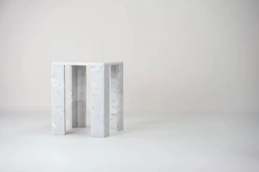 Avior is an evolution of the Gravity side table. We decided to keep the same concept of lightness and movement, abstracting the motion of the flying Carrara marble into a different 3D iron structure. The geometry was achieved through playful experimentation, exploring the variety of forms a simple concept could create.