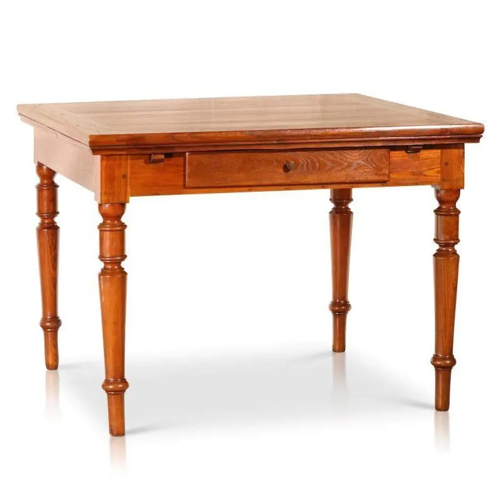 This exquisite Circa 1800’s Italian walnut extendable table features lovely Louis XV style columned legs and pull out underneath drawers. The top of the table folds out to a full size large dining table or alternatively, the table seats four people comfortably when un-extended. This perfect piece of history is structurally sound and would be a wonderful feature in a modern dining room.The size of this product: ClosedLength: 108 cmWidth: 102 cmHeight: 80 cmThe size of this product: ExtendedLength: 198 cmWidth: 102 cmHeight: 80 cm.