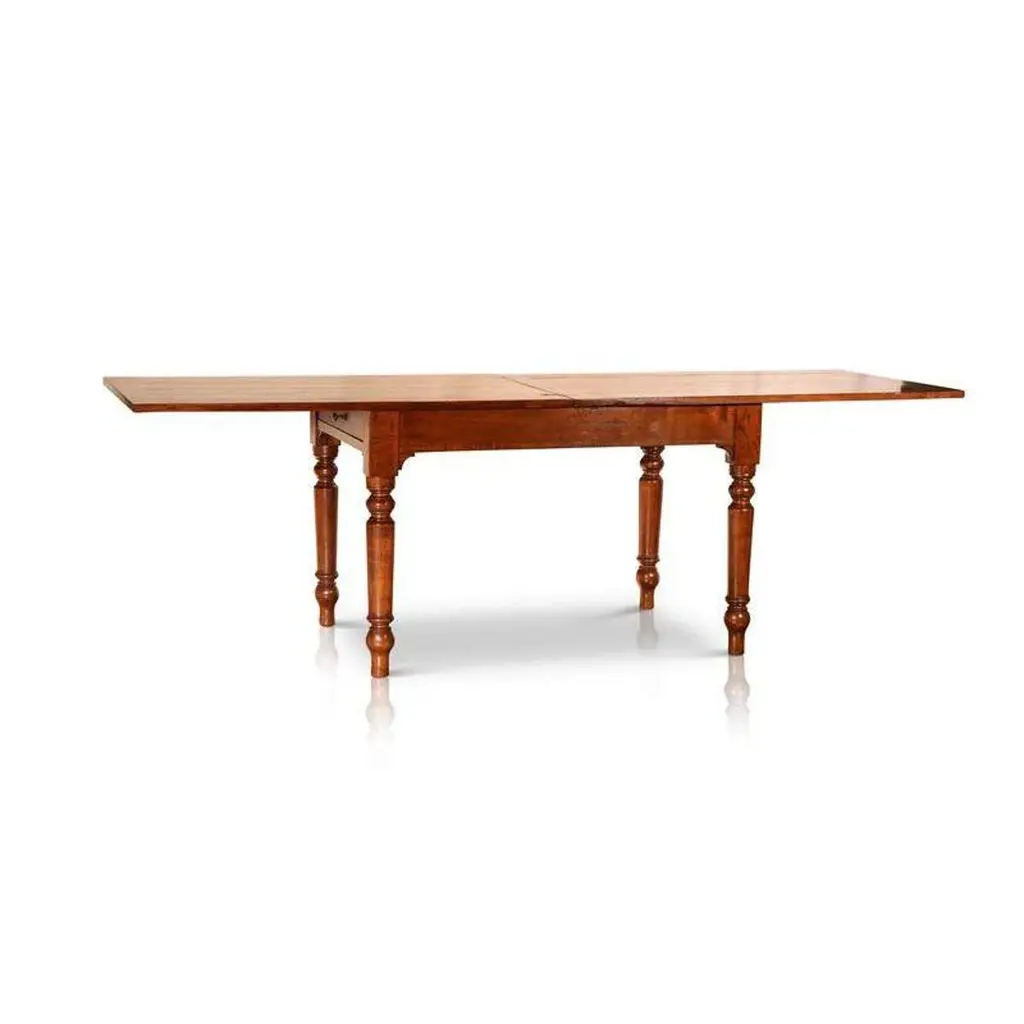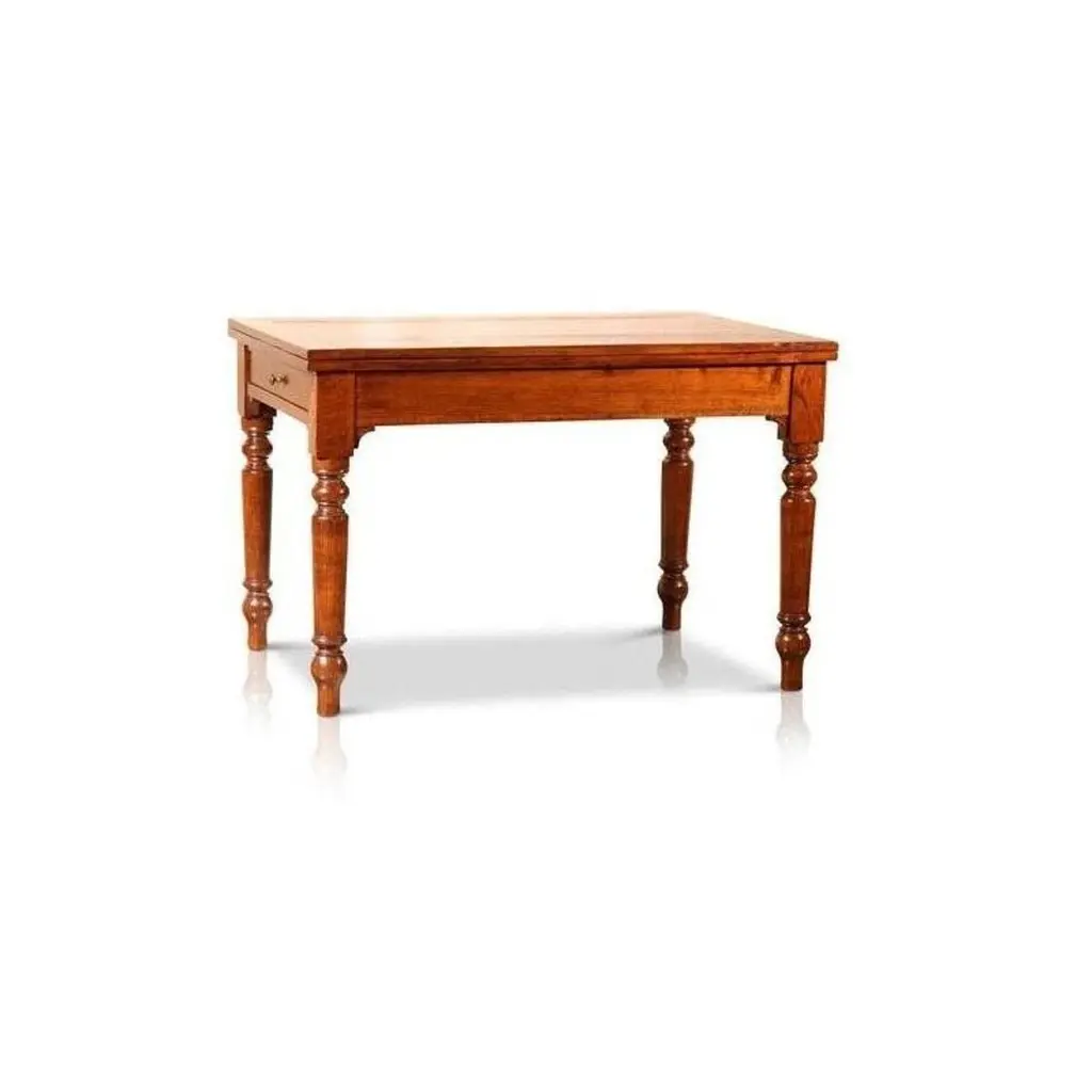 A rare piece to visit our gallery, this exquisite chestnut extendable table has been dated at approximately Circa 1850, and remains in perfect structural and functional condition. Found in Italy, this lovely piece features hand-carved, columned legs and side drawers. The Italian chestnut top, folds over on its original hinges to comfortably seat eight people. A truly extraordinary Italian table.The size of this product: closedLength: 123 cmWidth: 82 cmHeight: 81 cmThe size of this product: extendedLength: 246 cmWidth: 82 cmHeight: 81 cm.