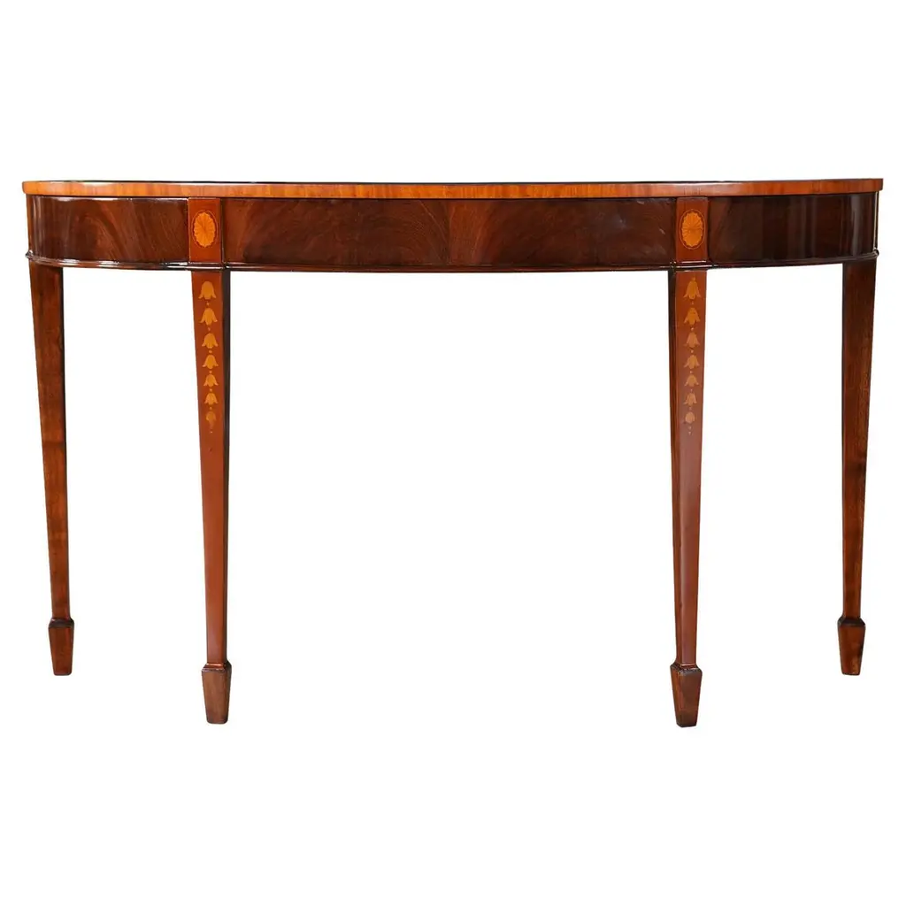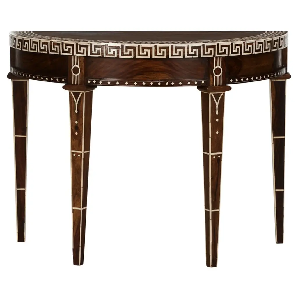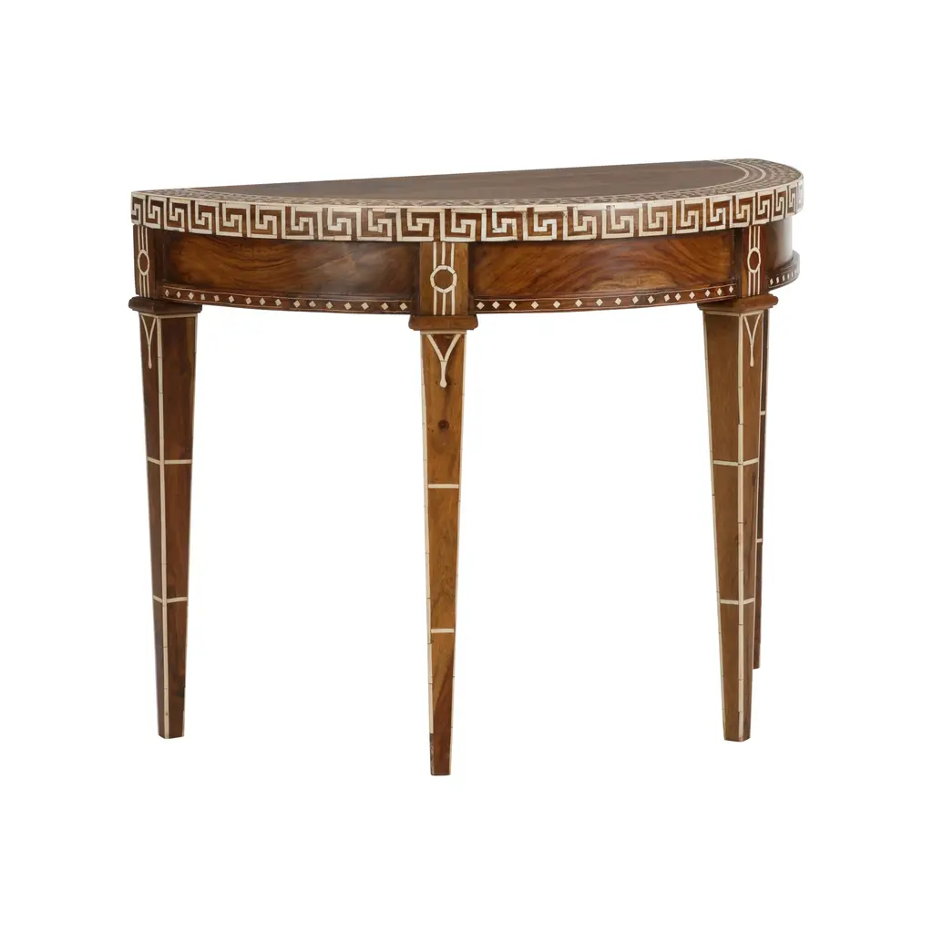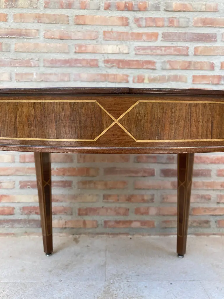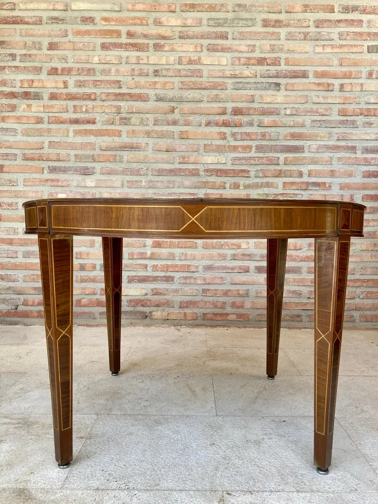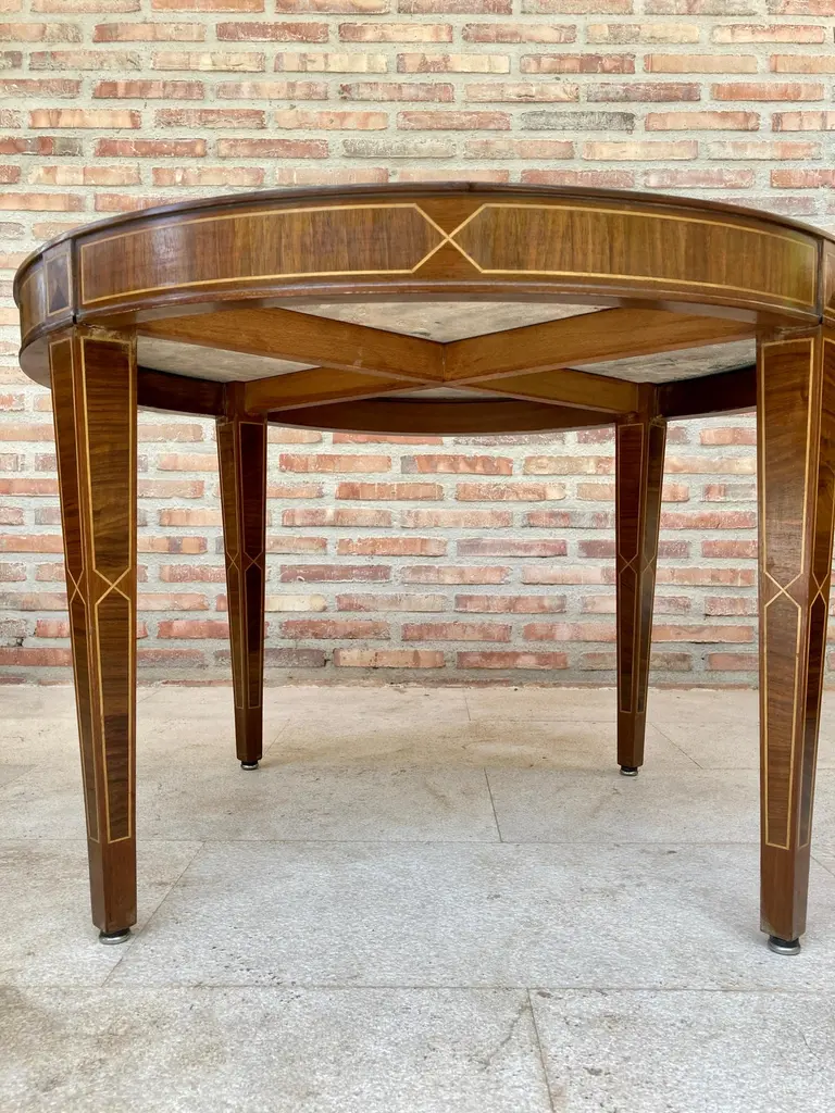 Circular Side Table In Wood With Lemongrass Marquetry Fillets