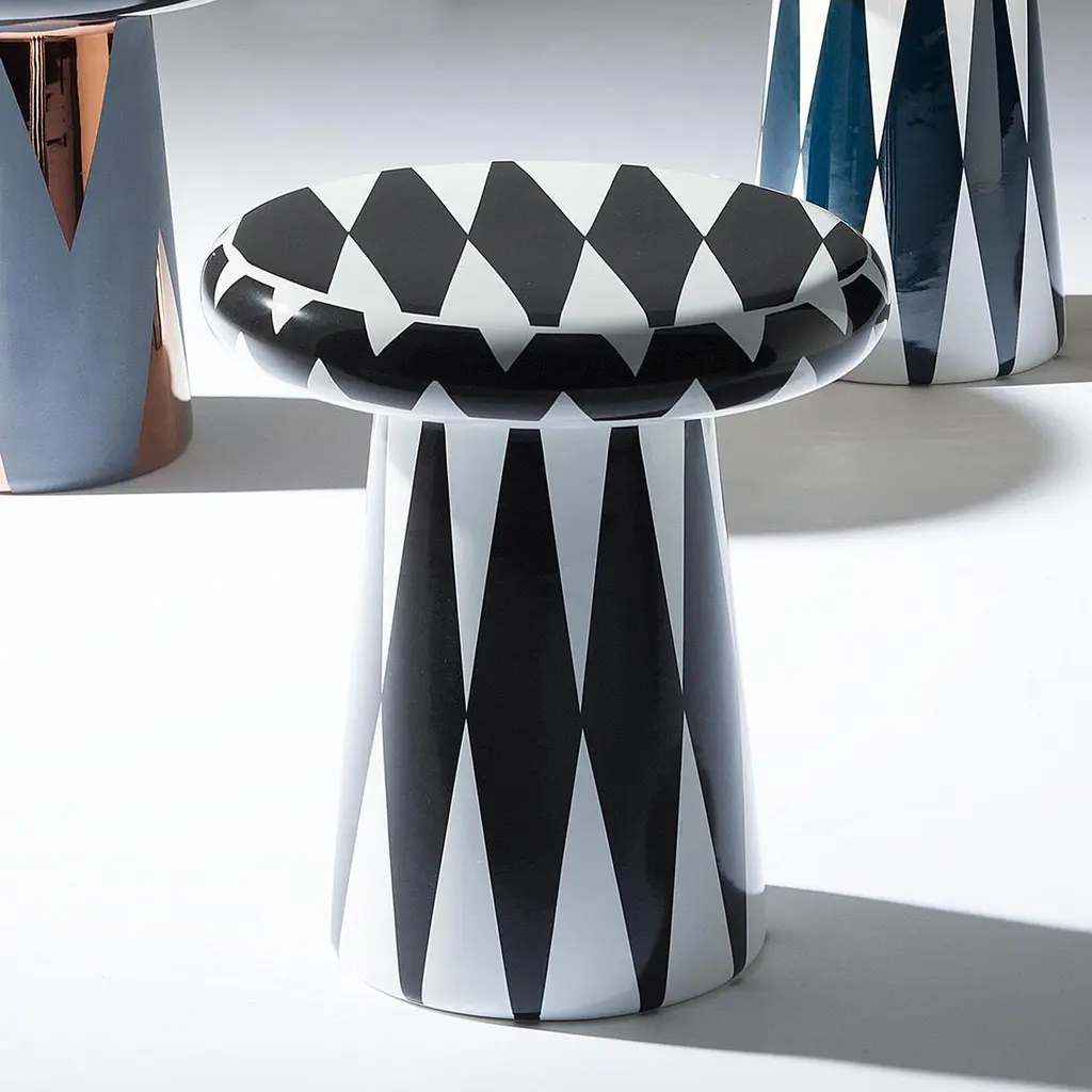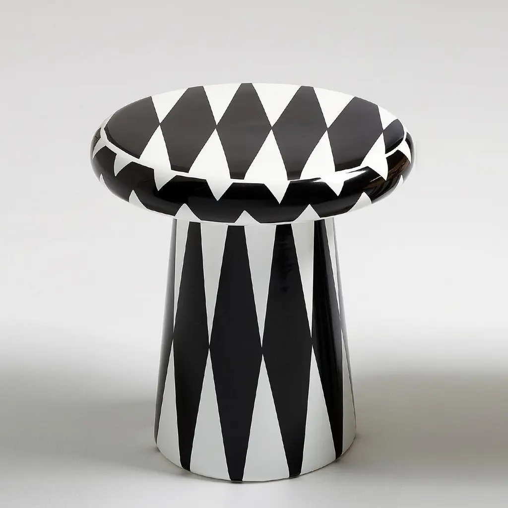 Side table circus black and white all in hand-crafted ceramic in lacquered finish, made in Itlay.