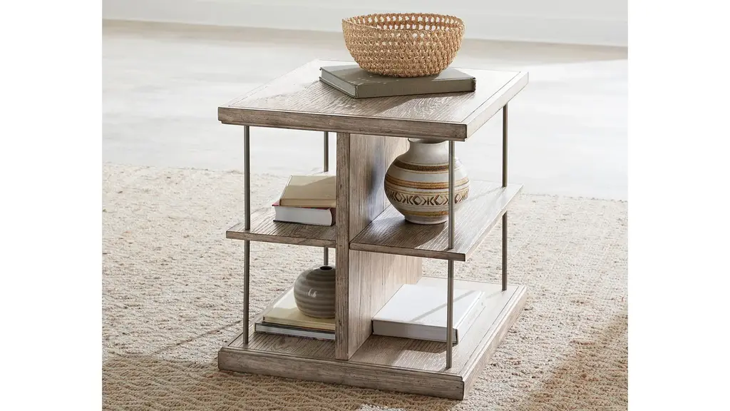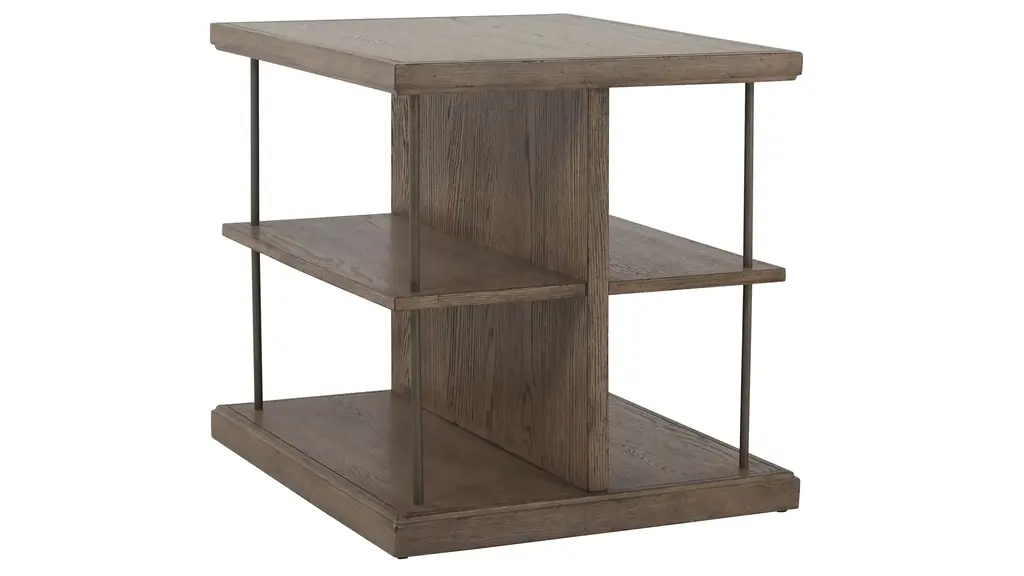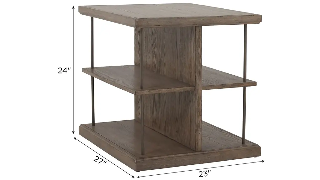 Bring a contemporary vibe into your space with the City Scape End Table with shelves. Designed with poplar wood with an antique distressed finish, it complements a variety of living room styles and palettes perfectly.