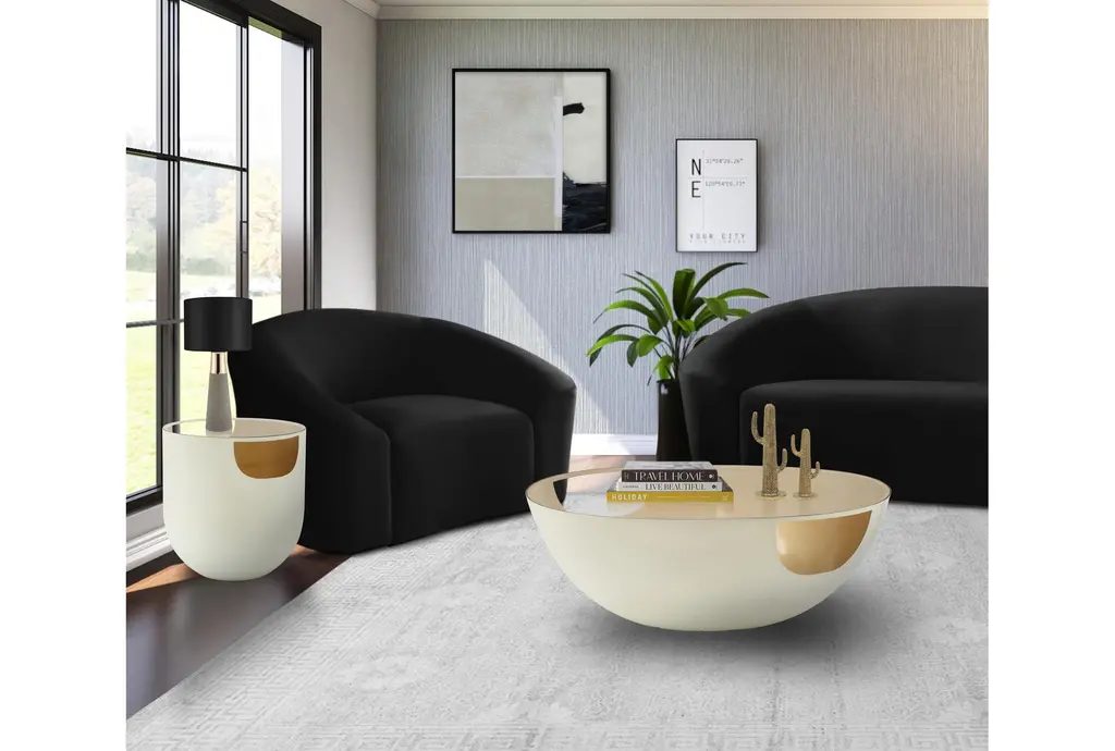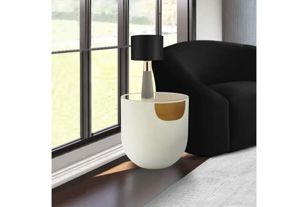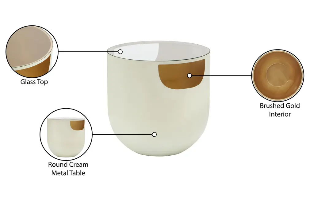 Claire Modern Cream + Gold 20" Round Glass Top End Table