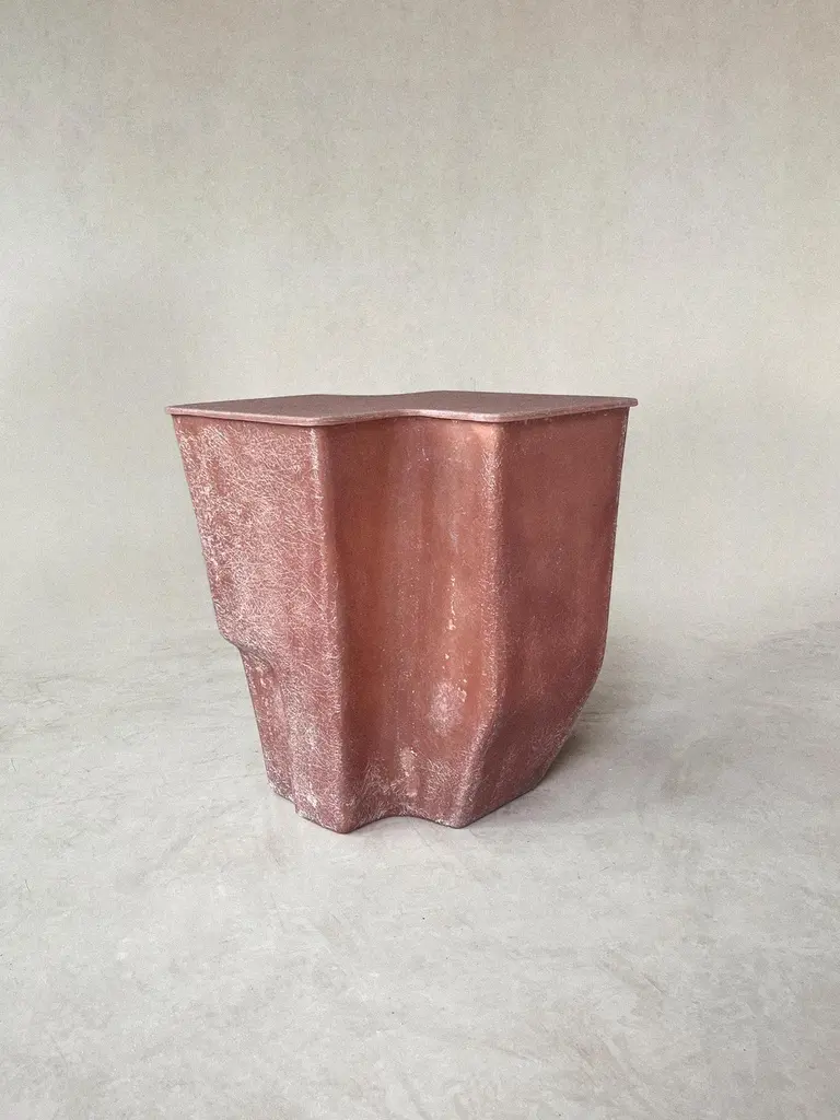 The artisanal process of creating our Clam Side Table gives each piece an individual soul and patina, as the temperature, humidity and hands at work all contribute to its distinctiveness. It is a reaction to the mass-produced and industrial, ethereal brutalism with handmade irregularity at its core, revealing the material's inherent beauty through a process that allows limited control. The shape, with a tangible nod towards classical sculpture, serves as canvas for the process. Drawing inspiration from seashells and their periostracum, the name emphasizes the unique patina on each object's body.With an essentialistic approach we create laboriously crafted furniture and objects by exploring the raw nature of materials and pushing its limits to find balance. We aim to give a soul to this traditionally industrial material. The material is hand-dyed and slight variations in the colour from piece to piece must be considered a characteristic of the artisanal process. Each piece will have its unique patina. The piece has a waxed finish with a satin gloss. Can be produced with UV-resistant coating, always with a subtle satin gloss. All our objects are hand layered by skilled craftsmen in Sweden. Each one with personal irregularities told by the hand, the season and the conditions. Therefore each item will vary somewhat in colour and detail.