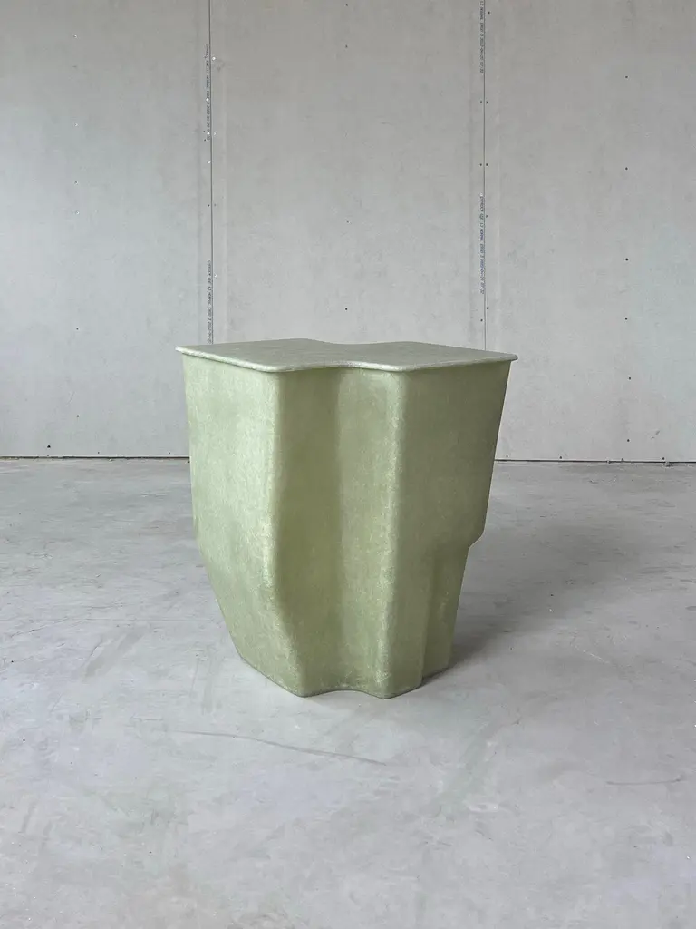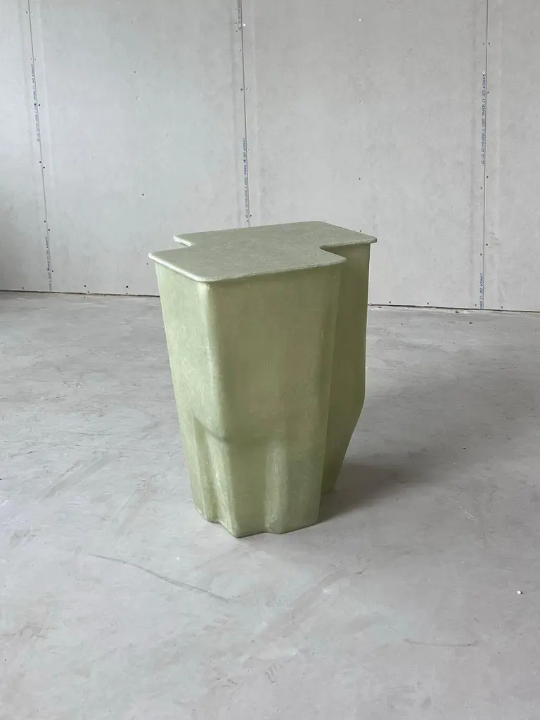 Clam Medium Side Table In Raw Green, Handcrafted In Fiberglass By Vava Objects