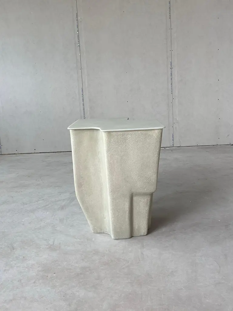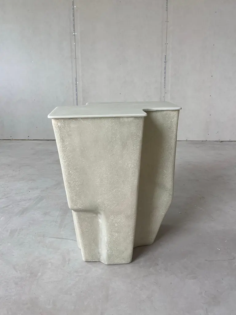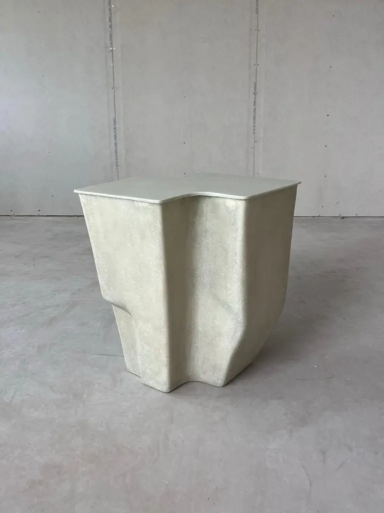Clam Medium Side Table In Raw Moon, Handcrafted In Fiberglass By Vava Objects