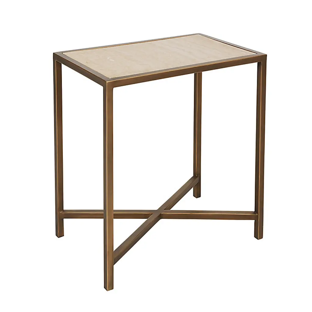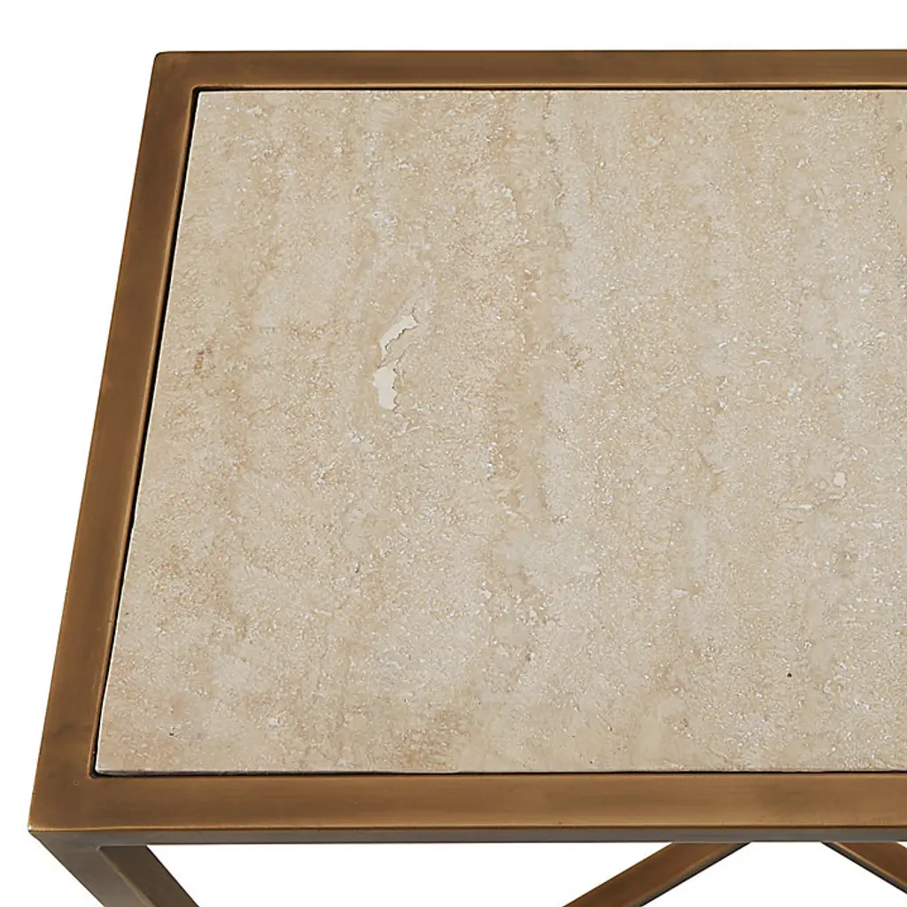 Well-designed accent tables act like jewelry for your room, giving it a polished look. Our Clare Side Table is beautifully simple and sophisticated. Its clean elegant lines are handmade of iron and surround an inlay top of solid travertine marble. Natural fissures in the stone have been filled to give it a smooth surface for serving drinks and displaying small objects d'art. Clare Travertine Side Table features: