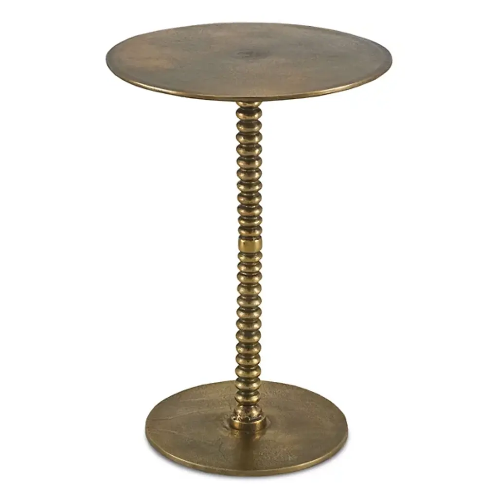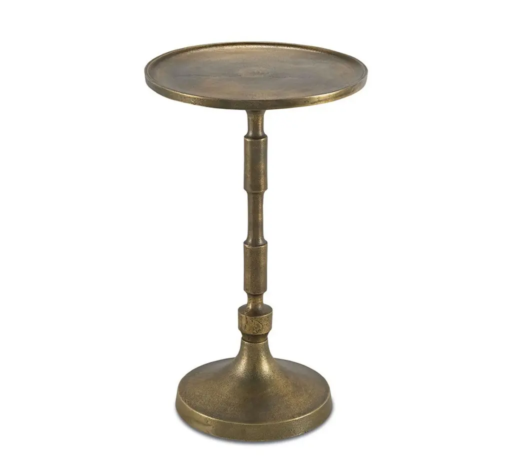 With a nod to the industrial era, theClares Round Metal Accent Table boasts a machinery-inspired silhouette that’s brought to life in a vintage brass finish for an added dose of handsomeness.