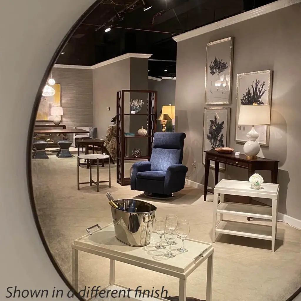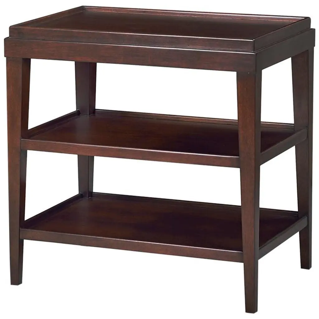 A Classic style rustic country wood-tone side table with a galleries dish top, the finish with natural highlights, time-worn physical distressing, and hand-rubbed satin finish and with square tapered legs.Dimensions: 18" W x 27" D x 27.25" H.