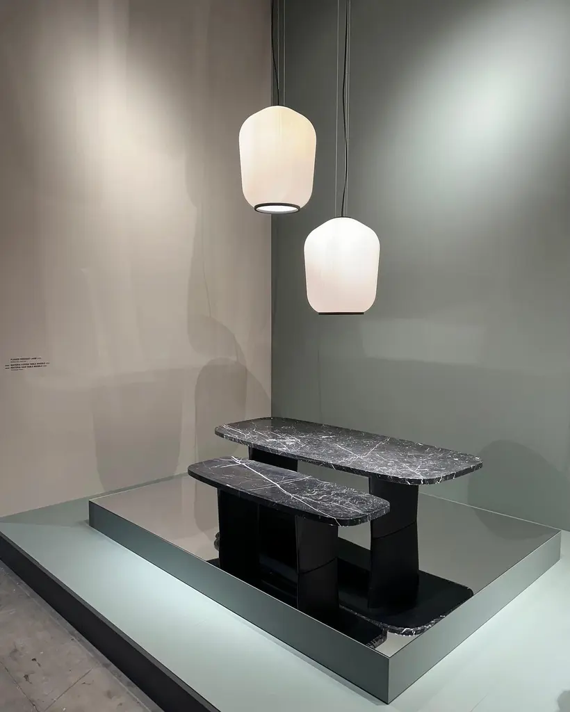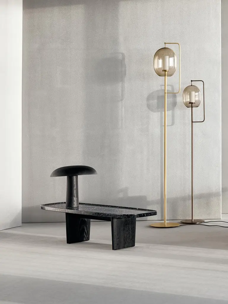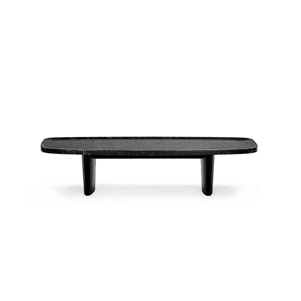 Side and coffee tables. Available in three sizes. Frame solid ash, black lacquered. Marble tabletop, elaborately milled, high-gloss polished and impregnated. Tabletop support colour-lacquered metal in signal black (RAL 9004). Black felt gliders. Available in two more sizes: Matéria Coffee Table Marble and Matéria Long Table Marble.The Matéria low board / occasional table series is characterised by its special dimensions and calm aura. The concave, organically shaped tabletop evokes an intuitive desire to stroke its surface and feel its natural texture. What was originally a purely experimental design by German designer Christian Haas has been developed into a trio in collaboration with ClassiCon. Matéria is available in three different sizes and in three different finishes. Individually or in combination, these handcrafted low boards are characterised by their materiality and demonstrate how sensuous a minimalist approach can be. In addition to the versions made of natural or indigo-stained, open-pored travertine in combination with light ash wood, the series is also available in a deep black version with a tabletop made of high-quality Nero Marquina marble and a frame made of black lacquered ash wood. The black marble version has the presence and constancy of a sculpture and exudes a luxurious flair. The natural marbling of the high-sheen, impregnated natural stone makes each piece unique. Both versions of Matéria – travertine or marble – are captivating in their own unique way with their incomparable, natural look, which is reminiscent of an abstract painting.