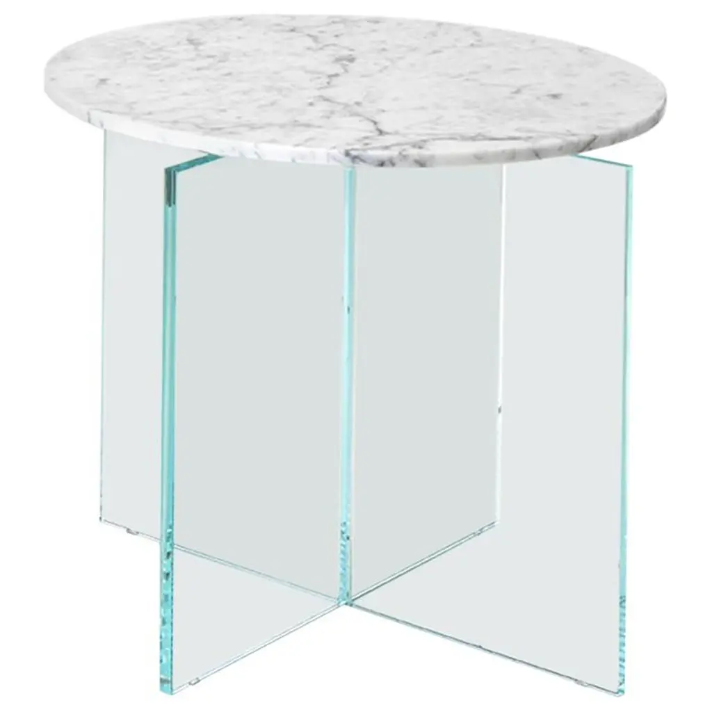 Claste Beside Myself Round Large End Table In Carrara Gioa Marble And Glass Base