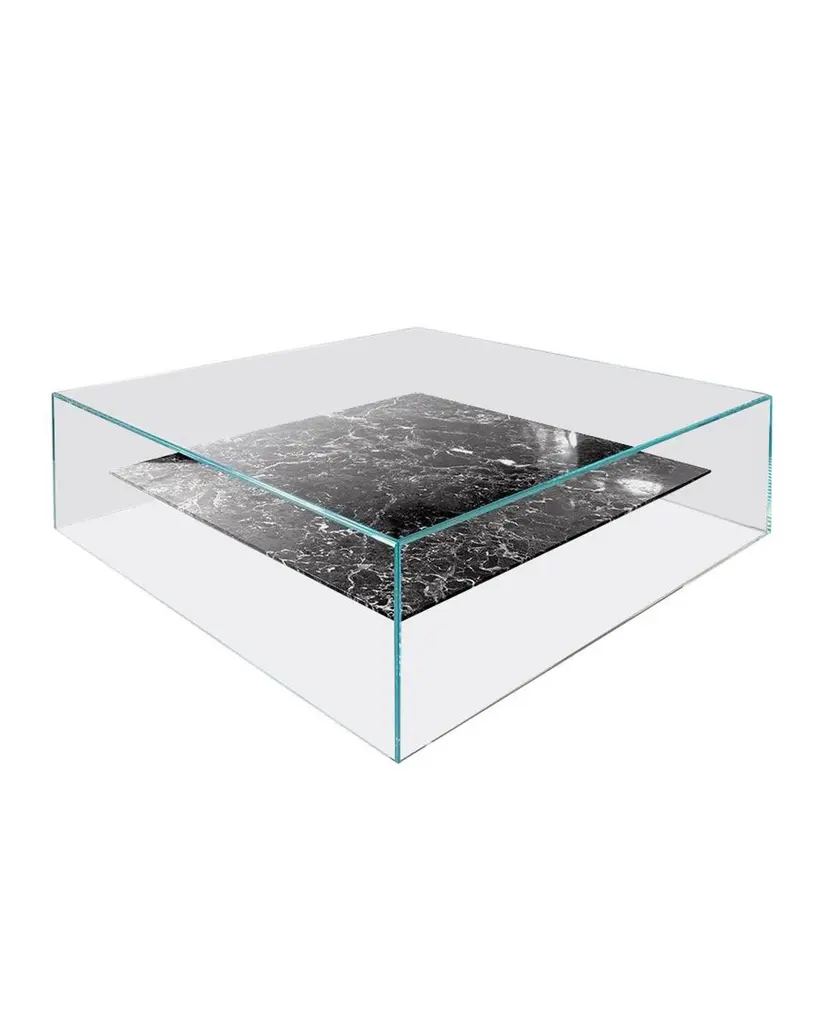Claste Beside Myself Small Square End Table In Belvedere Black Marble And Glass