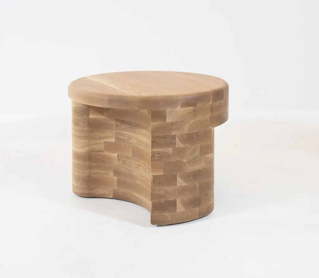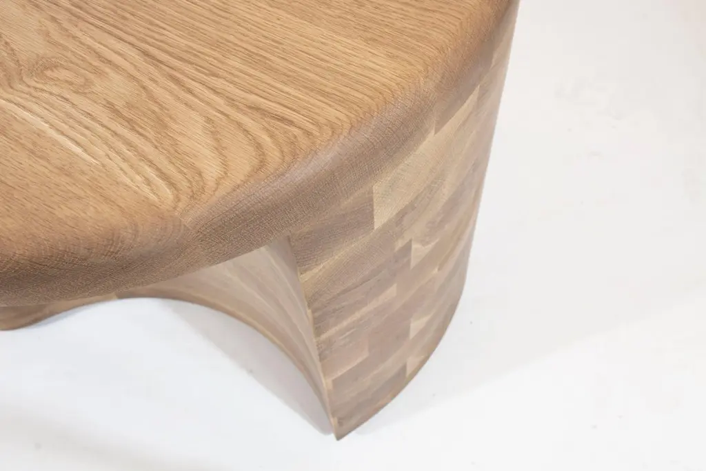 This table was the result of an investigation into combining the two main methods of sculpture, namely the removal of mass from an object vs the application of material. The final form is divided into a specific number of layers which are then, in a sense reassembled using the stack lamination method to create the finished piece. The simplicity of the circular top and how it relates to the asymmetrical base as it twists and turns creates a sense of visual play that remind me of certain movements seen in contemporary dance.Quinlan OsborneAvailable in Plaster and WoodCustomizable in Size upon request