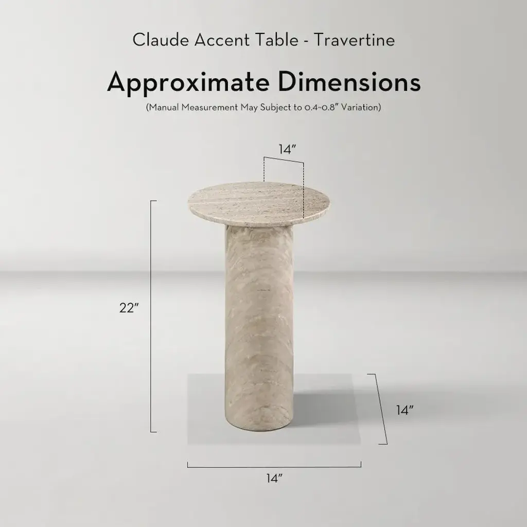 The Claude Accent Table is a study in understated sophistication. Crafted from solid Indian travertine marble, its unique veining and minimalist design add a natural yet refined touch to any room. A versatile accent for modern and classic interiors alike.Cusiom Orders: Custom furniture is manufaciured especially for you, which is why we do not accept cancellations, exchanges, or return.