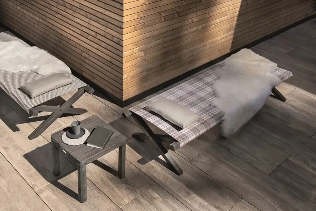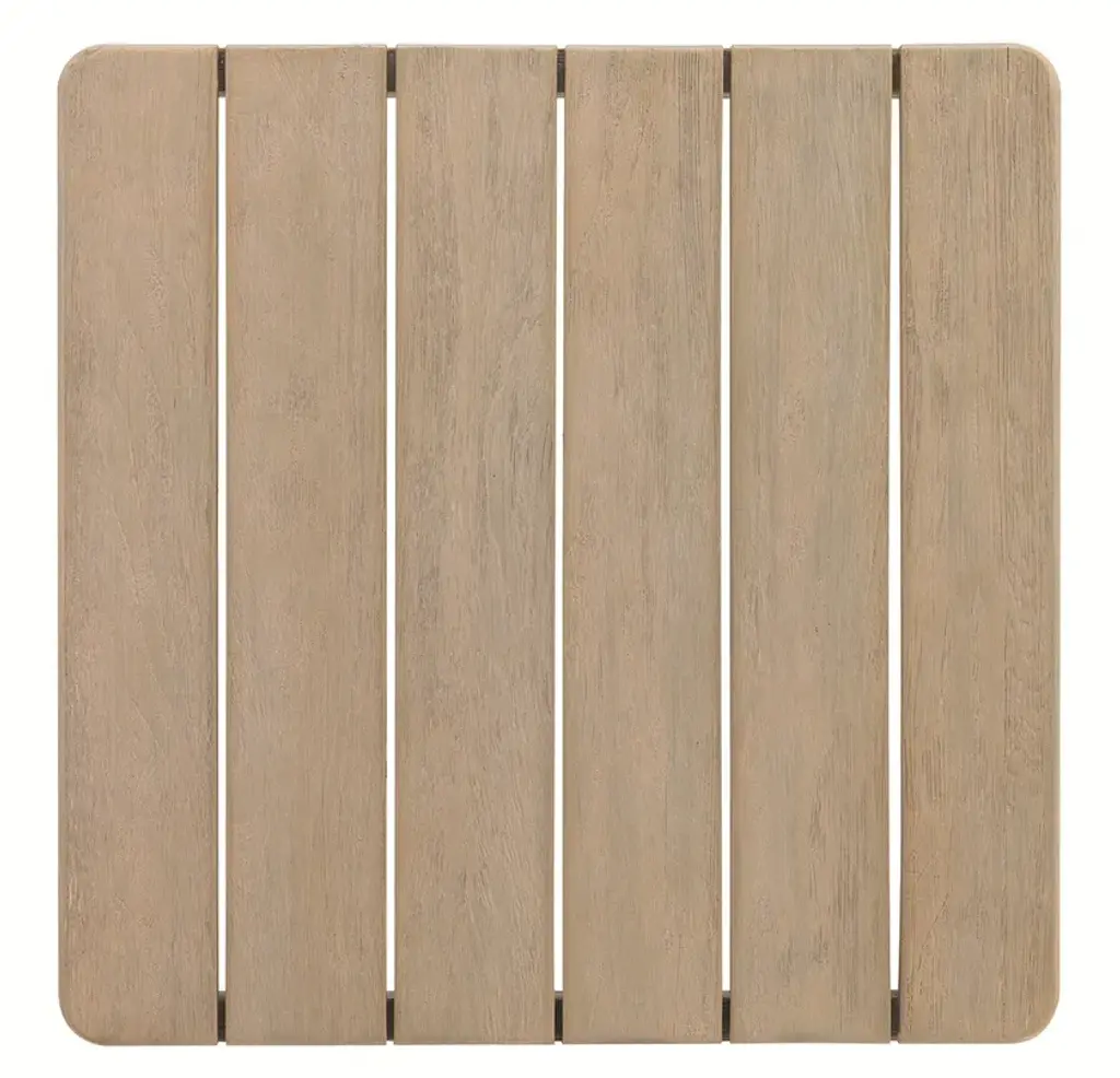 Made with teak wood, the small CLAY table goes well in every furniture set, with sun loungers, reclining sun chairs or armchairs, thanks to its compact dimensions and wellstudied proportions.