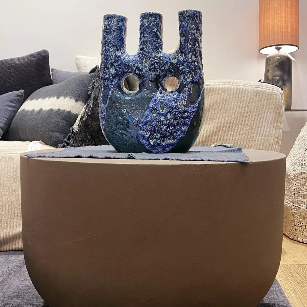 Side Table Clayton Large with all structure in polymercovered with clay layer in brown light shadow finish.