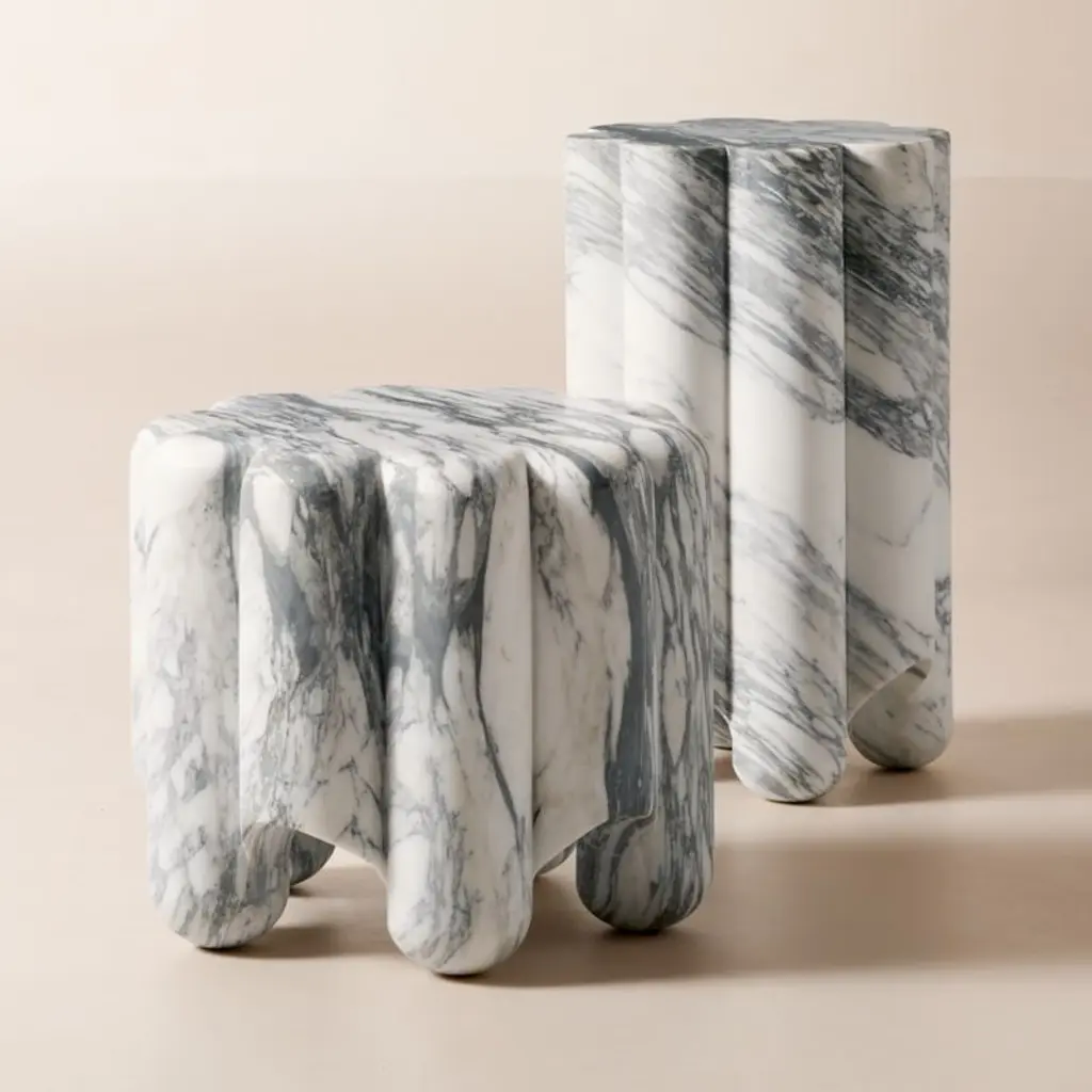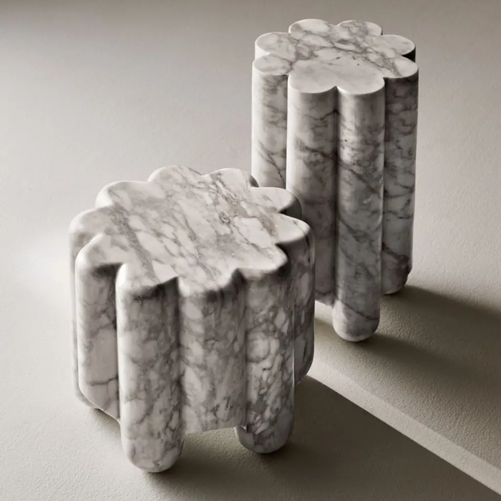 Clemence Carved Marble Tall Side Table By Goop