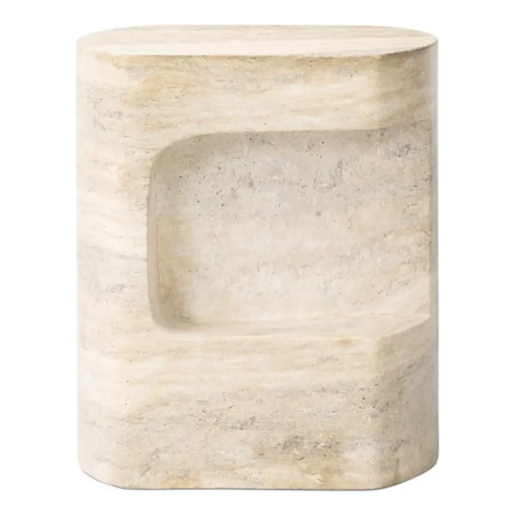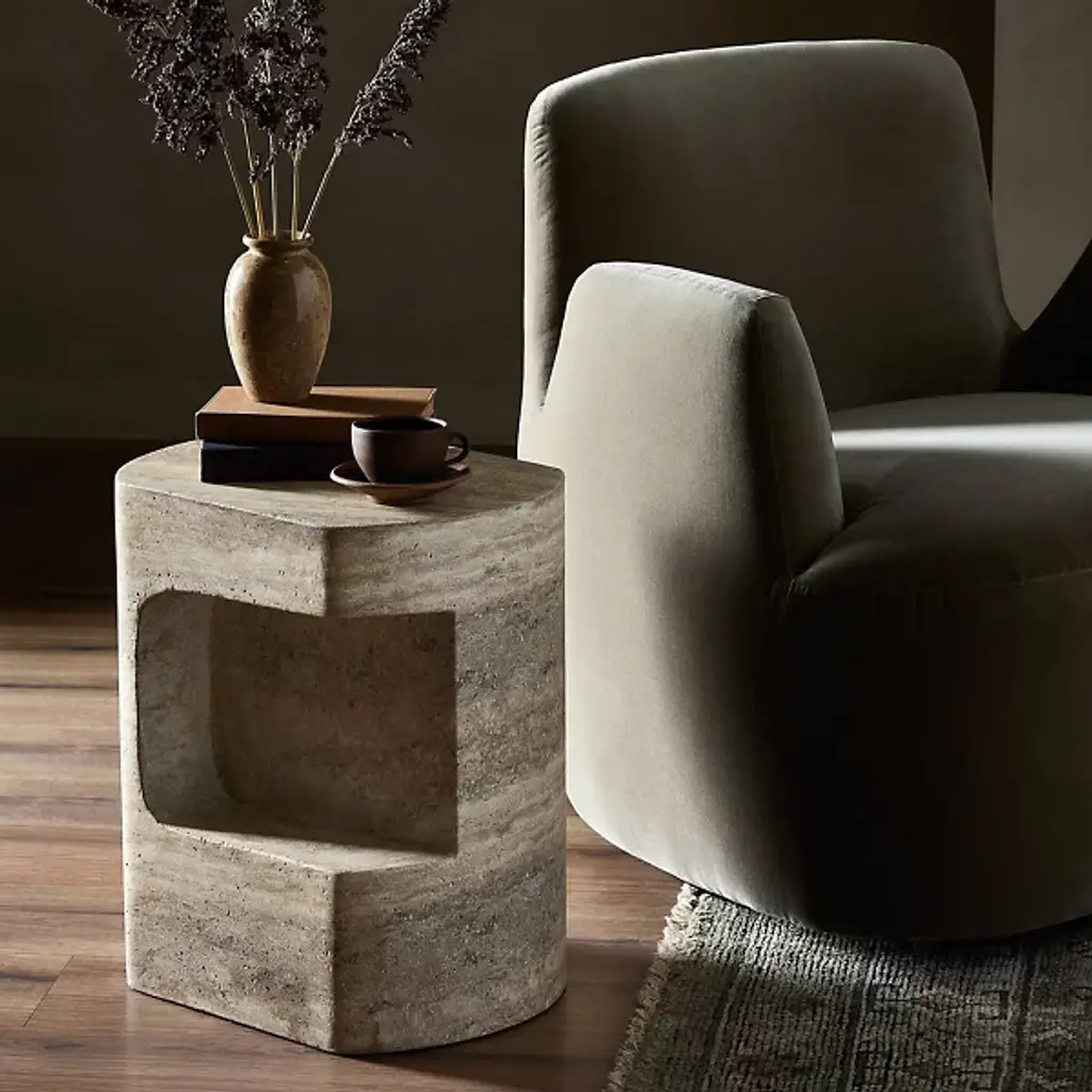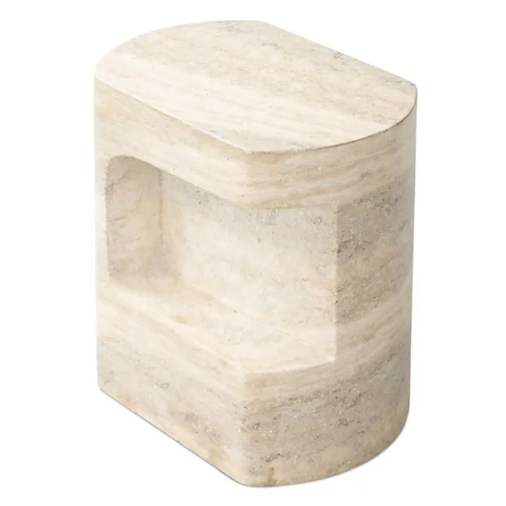 The Clementine End Table from Four Hands is a versatile and contemporary accent piece that seamlessly blends design with the beauty of cast concrete. The table's distinctive cutout detailing brings a clean and sophisticated vibe to any space, making it an enduring addition to your living room, bedroom, or office. Crafted with meticulousness, the cast concrete composition creates a textured look reminiscent of travertine, adding a charming element to its aesthetic.