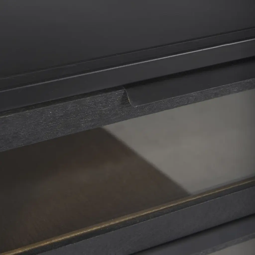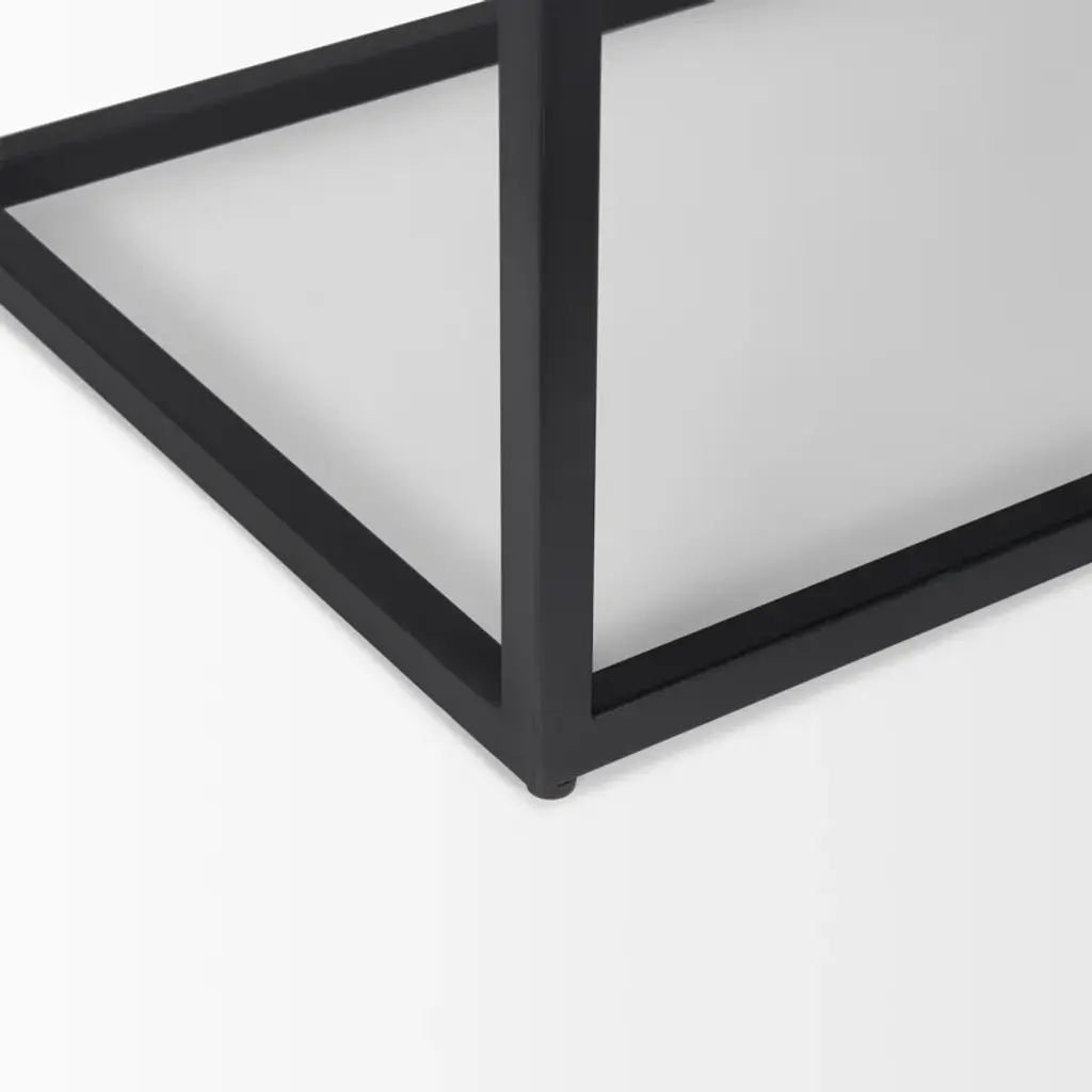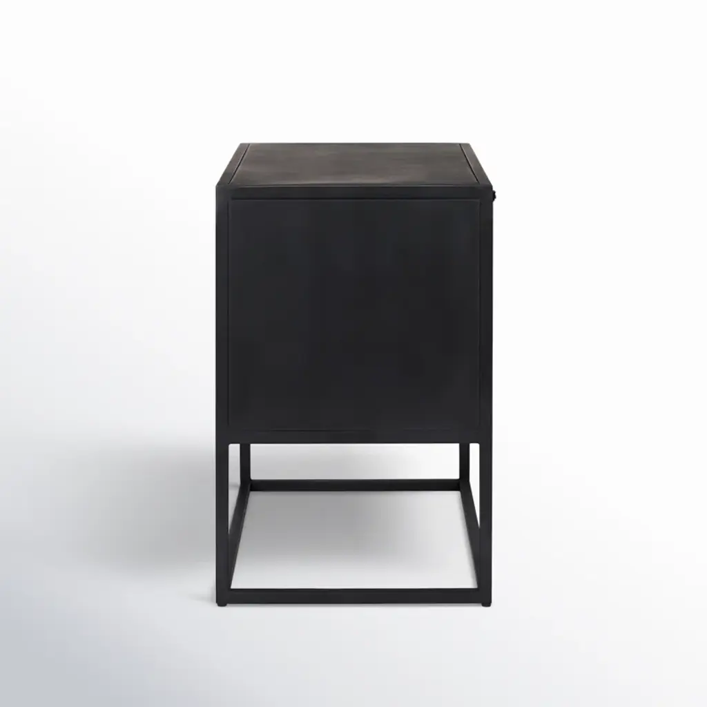Our side table has that earthy, organic look that will cozy up any room. Bold lines and an open iron sled base are standouts, and the drawers are fronted with tempered glass paneling to expose the lighter wood interior. There's a lot of room inside for all your daily essentials. Plus, the spacious table top is the perfect platform for an accent lamp and décor.